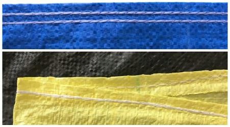 Worki obszyte u góry i podwójnie u dołu.