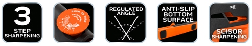 Ostrzałka wyposażona jest w antypoślizgową podstawę oraz charakteryzuje się ergonomicznym kształtem uchwytu.