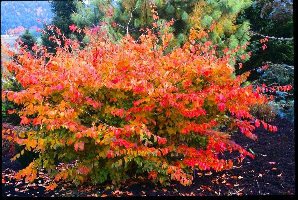 To ciekawa odmiana powstała ze skrzyżowania parrocji i sycopsisa o intensywnych kolorach jesieni.