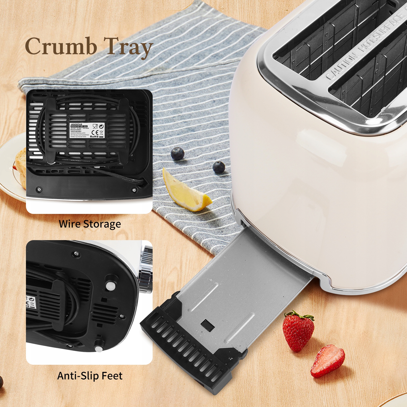 Wszystkie okruchy pieczywa zbierają się na specjalnej tacce, którą łatwo możesz wyjąć i oczyścić.