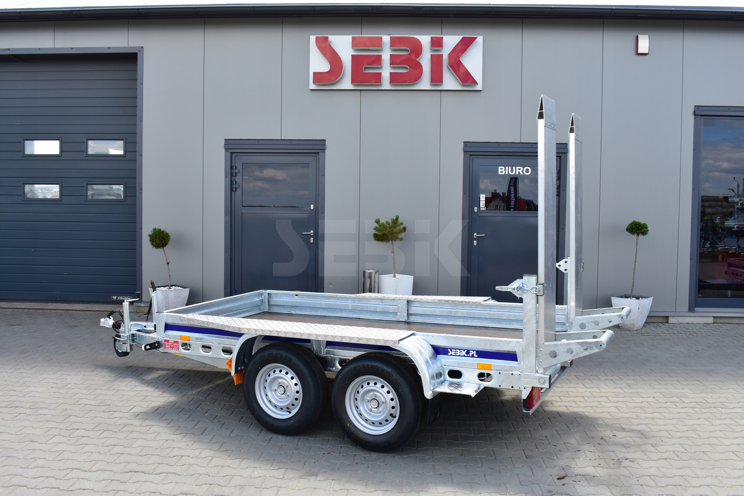 Zapraszamy do zakupu nowej hamowanej przyczepy dwuosiowej z homologacją (nie wymaga pierwszych badań technicznych). Dopuszczalna masa całkowita od 1600 - 2700 kg. Wyprodukowana jest na osiach skrętnych niemieckiej firmy AL-KO Kober. Rama wykonana jest z giętej blachy o dużej wytrzymałości cynkowanej ogniowo. Dyszel spawany w kształcie litery V tworzący jednolitą konstrukcję podwozia. Na podłodze znajduje się wzmocniona poprzeczkami sklejka wodoodporna.