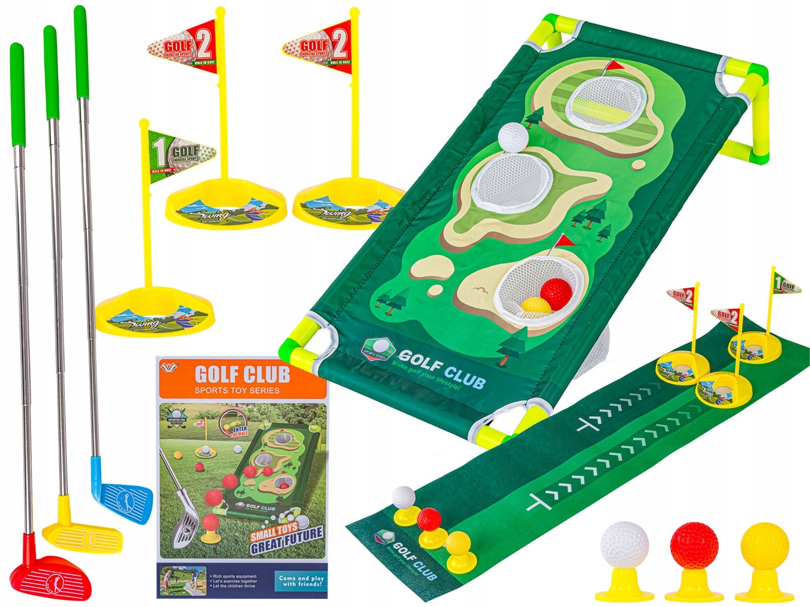 Zostań mistrzem mini golfa! Wspaniała zabawka dla dzieci i dorosłych!Sprawdź się w nowej, ekscytującej grze, która przyniesie Ci mnóstwo radości i zabawy! Mini golf to idealna propozycja dla każdego miłośnika sportów, który chce spędzić czas aktywnie i ciekawie. Zabawa, która zbliża: rodziców z dziećmi, braci ze siostrami!Gra dla prawdziwych strategów!Sprawdź, czy masz wystarczająco dużo zręczności i sprytu, aby odnieść sukces! Traf piłeczką do małego otworka na platformie i pokaż swoją celność! Możesz też poprawiać technikę na macie do trenowania. Mini golf to świetna zabawa dla całej rodziny lub grona znajomych, która pobudza wyobraźnię i uczy jednocześnie!W pudełku znajdziesz wszystko, co potrzebne: składaną platformę z nakładką, piłeczki w trzech kolorach, które nie pomylą Ci się podczas gry, oraz kije dopasowujące się do wzrostu graczy. A wszystko to zapakowane w estetyczne, kartonowe pudełko, idealne na prezent!Zestaw zawiera:- Składaną platformę z otworami- Piłeczki w trzech odcieniach: czerwonym, żółtym i białym- Trzy kije golfowe w różnych rozmiarach- Matę do trenowania- Akcesoria: chorągiewki i podstawki pod piłeczkiWymiary:- Złożona platforma: 68,5 x 34,7 x 18,3 cm- Mata: 101,4 x 22,8 cm- Opakowanie: 29,2 x 20,6 x 12,7 cmBaw się i trenuj z mini golfem, a developedz:- zręczność i koordynację ruchową- koncentrację i cierpliwość- wyobraźnię i kreatywnośćWspaniała zabawa gwarantowana! Zabawka przeznaczona dla dzieci powyżej 3. roku życia.