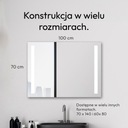 Dzięki funkcjonalności i długowiecznej elegancji, lustro posiada praktyczny przełącznik przechyłu oraz wysokiej jakości aluminiową ramę. Ta rama sprawia, że lustro jest nie tylko trwałe, ale również odporne na wilgoć, idealne do użycia w łazience. Pielęgnacja jest prosta: wystarczy przetrzeć je wilgotną ściereczką, aby utrzymać jego blask – nie trzeba używać agresywnych środków czyszczących.