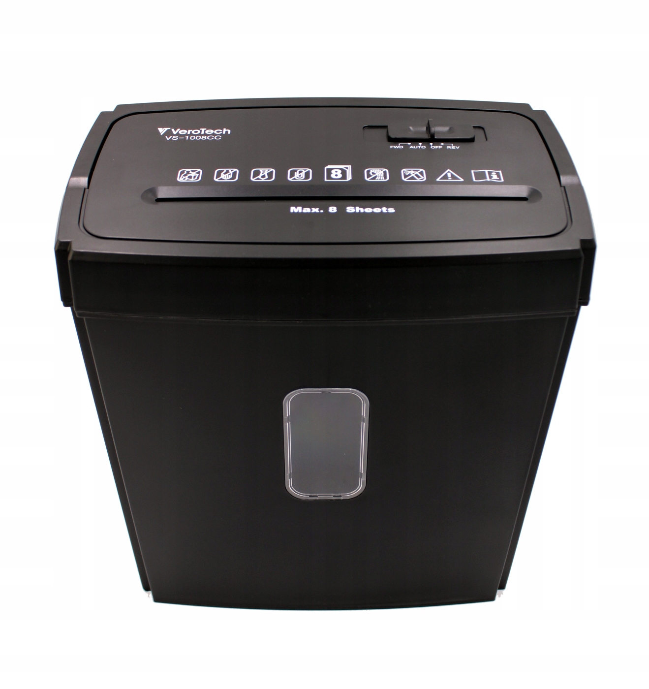Niszczarka Verotech VS-1008CC służy do niszczenia dokumentów i doskonale nadaje się do biura oraz użytku domowego. Jest w stanie jednorazowo zniszczyć aż do 8 arkuszy papieru w formacie A4. Posiada automatyczną funkcję start / stop oraz funkcję cofania zacięć.