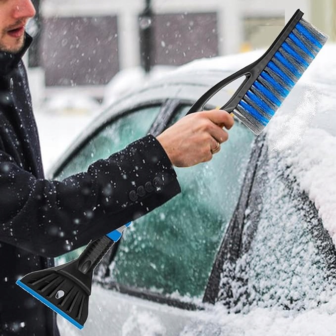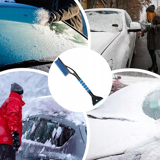 Specjalnie zaprojektowana skrobaczka skutecznie usuwa lód bez ryzyka zarysowań, a miękka, elastyczna szczotka nie pozostawia śladów na lakierze.