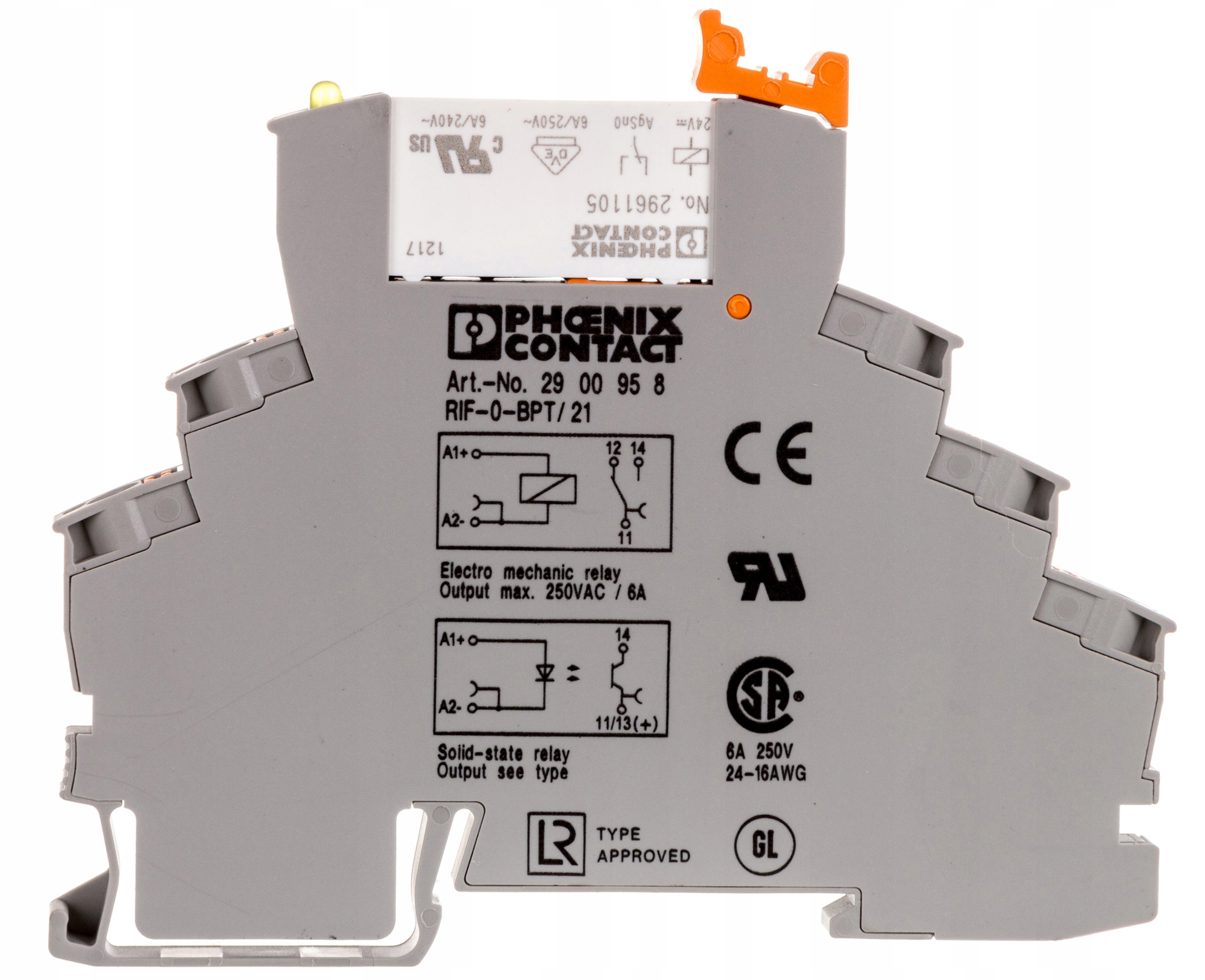 Wstępnie zmontowany moduł przekaźnikowy z przyłączem wciskanym, składający się z podstawy przekaźnika z wypychaczem i przekaźnika ze stykiem mocy. Konstrukcja styku z jednym zestykiem przełącznym. Napięcie wejściowe 24 V DC