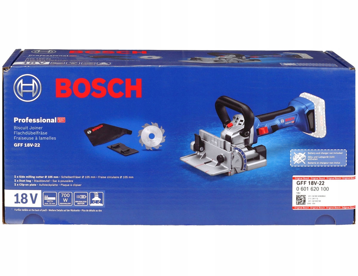 GFF 18V-22 to jedna z najpopularniejszych frezarek firmy BOSCH przeznaczona do frezowania rowków do połączeń płaskich (tzw. lameli) w drewnie, tworzywach sztucznych i lekkich materiałach budowlanych.