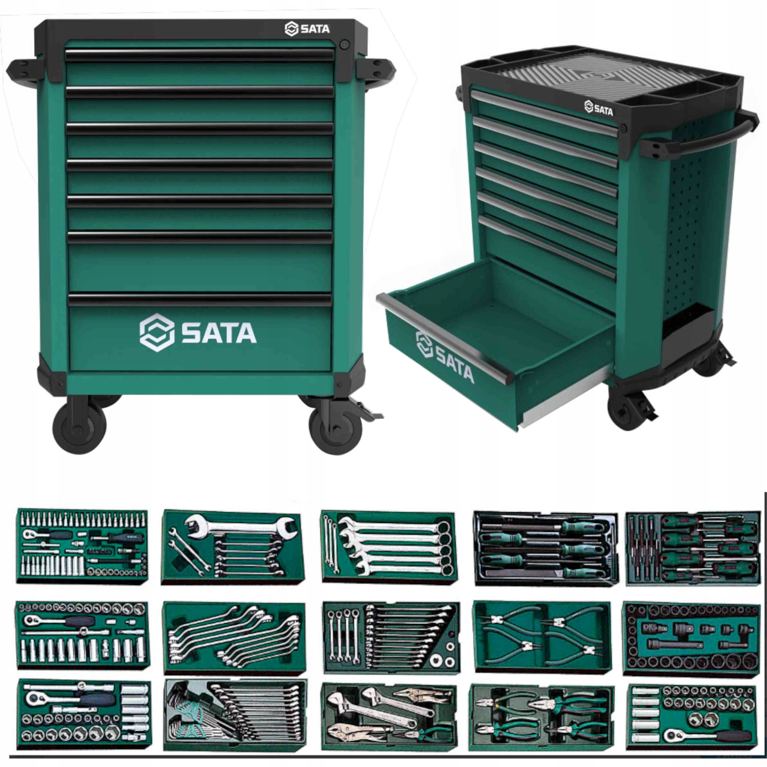 Potrzebujesz niezawodnego i kompletnego rozwiązania do przechowywania narzędzi? Wózek warsztatowy SATA ST09928G to idealny wybór dla profesjonalistów i majsterkowiczów!
