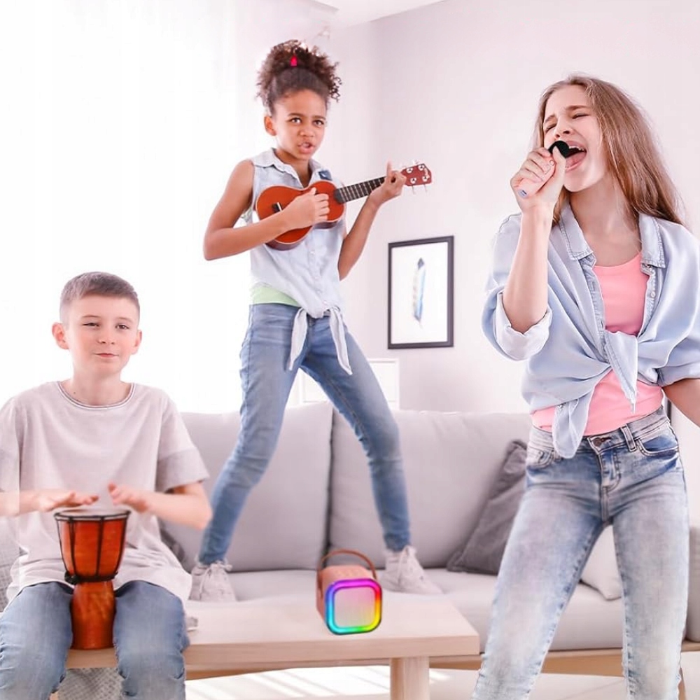 Zestaw do karaoke 2 mikrofony + głośnik bezprzewodowy Bluetooth to idealne rozwiązanie na urozmaicenie wieczorów ze znajomymi. Wspólne śpiewanie to świetny sposób na miłe spędzenie czasu i stworzenie niezapomnianych wspomnień. Dzięki temu zestawowi możecie słuchać ulubionych piosenek lub przeobrazić każdą okazję w niezapomniane karaoke.