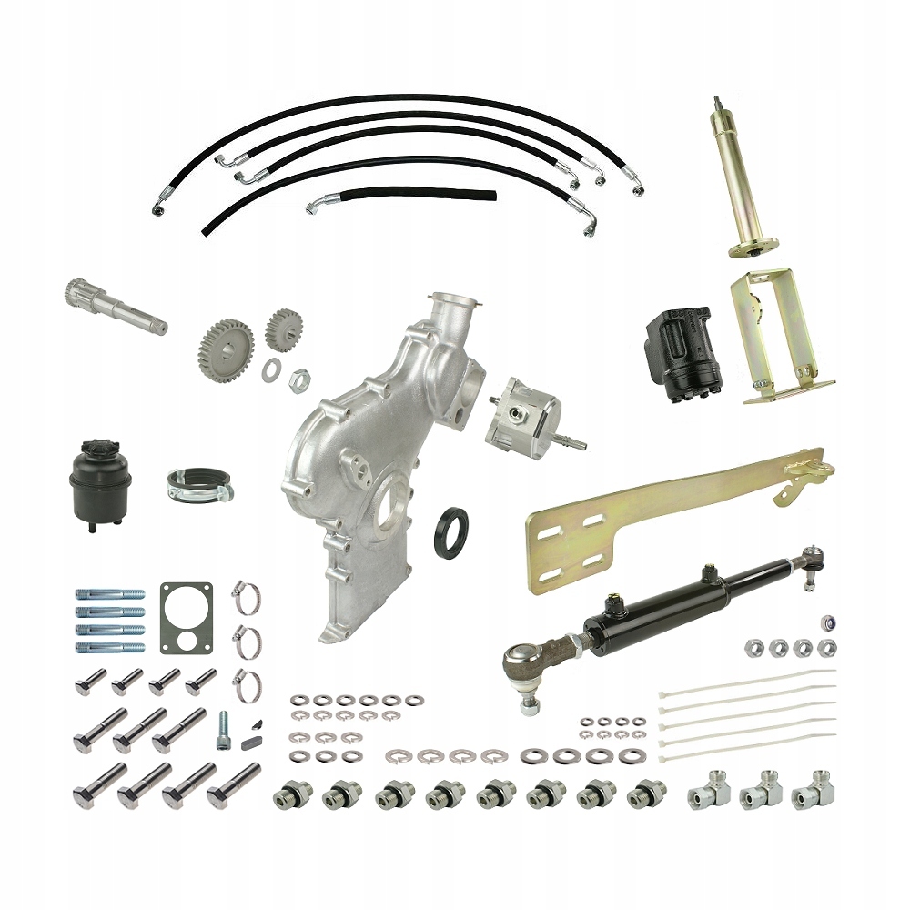 1. Wzmacniany cylinder hydrauliczny dwustronnego działania wraz z główkami. Główki mają możliwość smarowania, pozwalają na regulację cylindra przez co dają możliwość ustawienia idealnego równego skrętu. Cylinder idealnie pasuje w miejsce drążka kierowniczego.