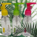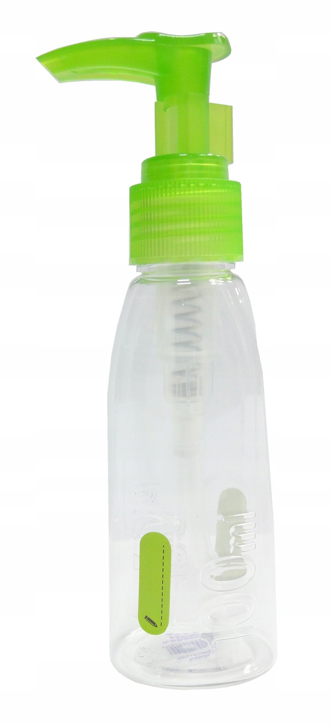Buteleczka wykonana z wysokiej jakości tworzywa sztucznego bezbarwna z kolorowym dozownikiem o pojemności 100 ml. Zamkniecie z dozownikiem z zabezpieczeniem przed przypadkowym naciśnięciem podczas transportu idealnie nadaje się do każdego rodzaju płynów które wyciskamy na rękę takich jak wszelkiego rodzaju mleczka, żele, balsamy. Buteleczka dedykowana do przelania produktów płynnych niezbędnych dla nas podczas podroży samolotem gdzie nie możemy zabrać ze sobą całego firmowego opakowania które przekracza pojemność 100 ml. Jak również do szeregu innych sytuacji gdzie nie jest nam potrzebne nie jednokrotnie ogromne fabryczne opakowanie.