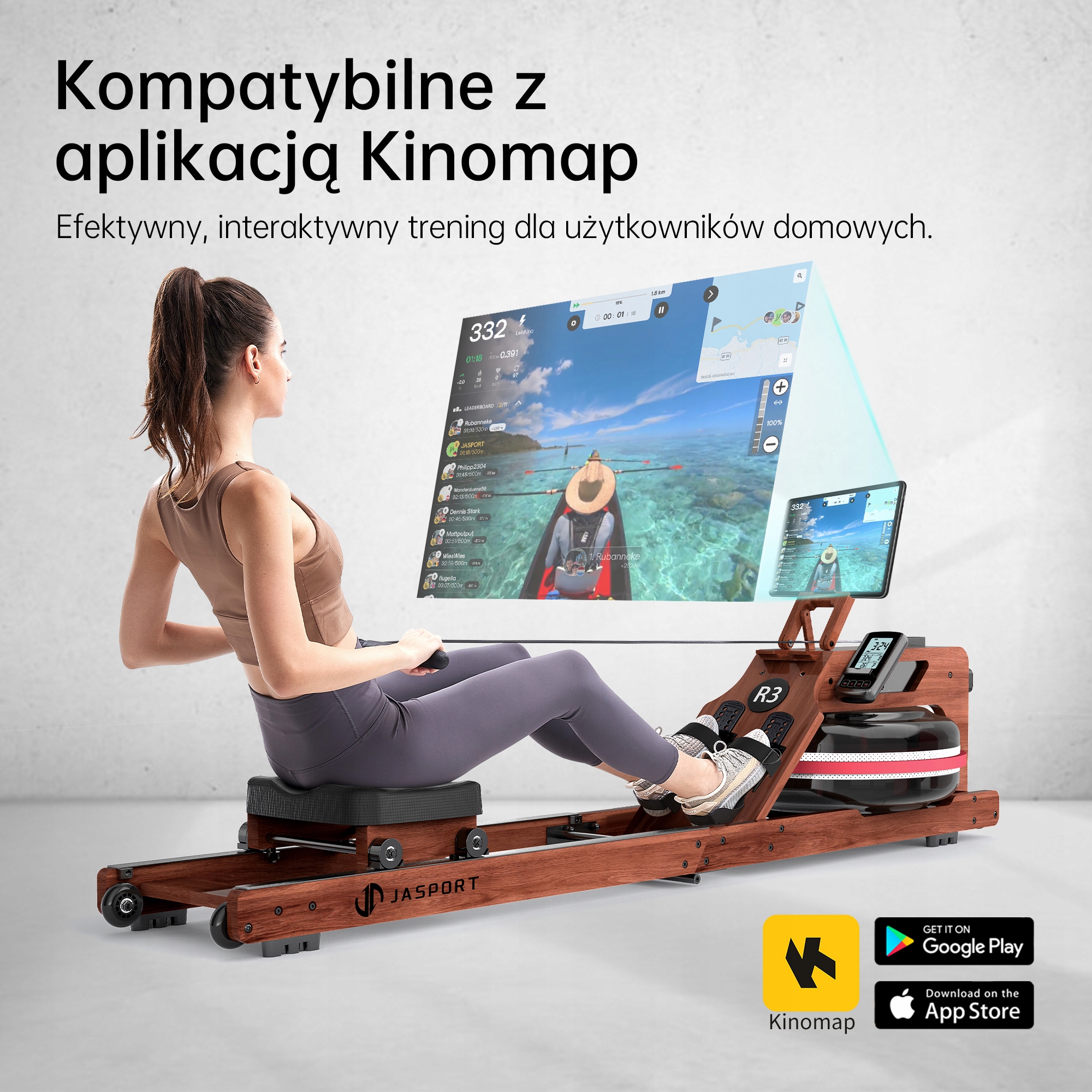 kompatybilność z aplikacją Kinomap oraz bezprzewodowym odbiornikiem do pomiaru tętna podłączenia JASPORT R3 do aplikacji Kinomap, aby uzyskać szczegółowego, radiowego i kontrolnego monitorowania w domu. Obsługuje bezprzewodowe urządzenie do pomiaru tętna częstotliwości 5,3 kHz, udostępnia tętna w czasie – idealne dla technologii i entuzjastów fitness.