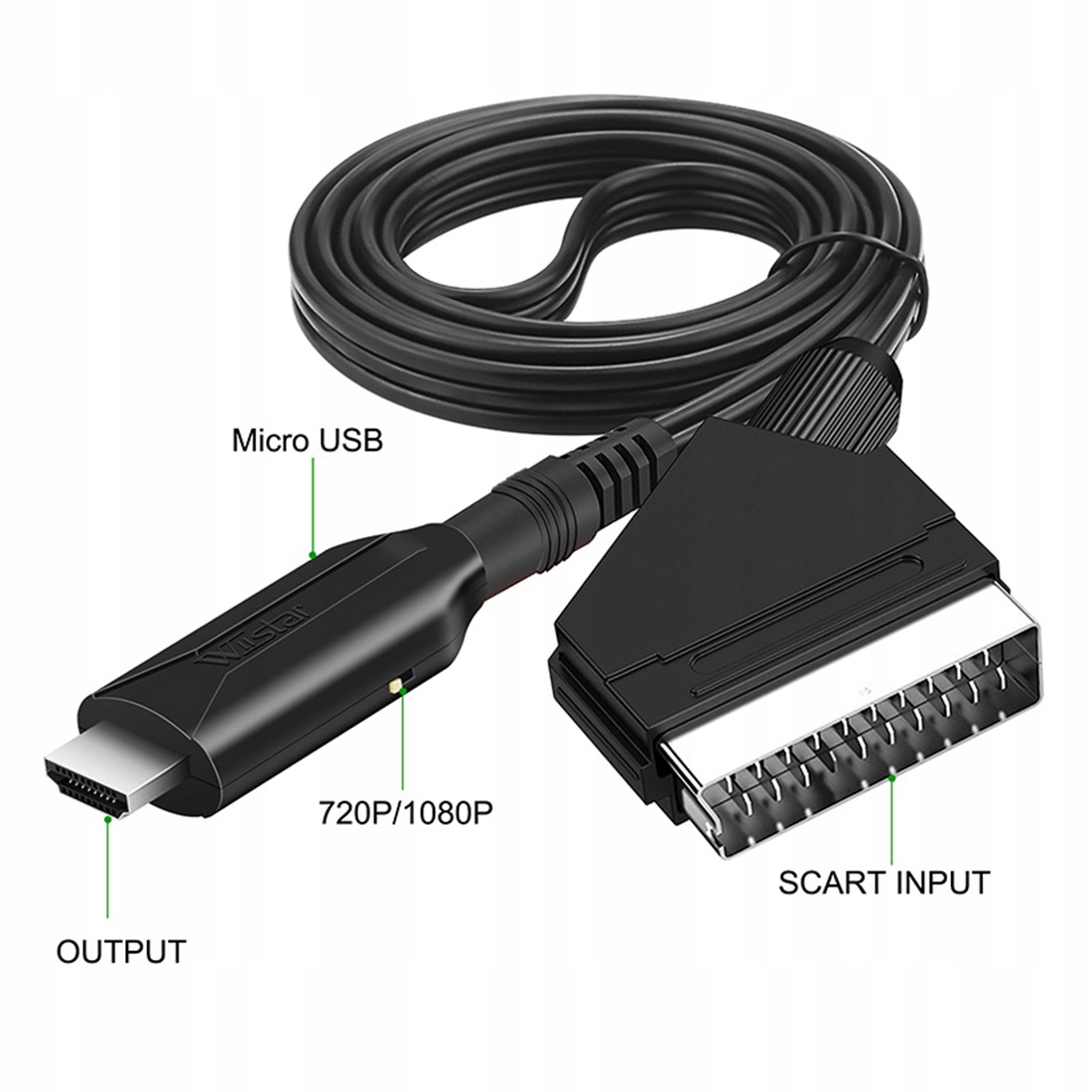 WIISTAR Scart na HDMI-kompatybilny konwerter Adapter audio-wideo wejście SCART na wyjście kompatybilne z HDMI dla HDTV/DVD/dekodera Bez napędu, lekki i elastyczny, plug and playZastosuj zaawansowaną technologię przetwarzania sygnału, aby zapewnić doskonałą dokładność, kolor, rozdzielczość i szczegółyObsługa PAL, NTSC3.58. Standardowe wejście TV NTSC4.43, SECAM, PAL / M, PAL / NWyjście 1080p / 720p kompatybilne z wsparcie HDMIWejście SCART: PAL, NTSC 3.58. NTSC 4.43, SECAM, PAL / M, PAL / NWyjście kompatybilne z HDMI: 1080p / 720pDługość kabla wyjściowego zgodnego z HDMI. le; 7m AWG26 HDMI-kompatybilny przewód standardowyDługość SCART kabel wejściowy. le; 8m AWG26 SCART przewód standardowyMaksymalny prąd roboczy. Błąd pomiaru wynosi /- 1-3cm.