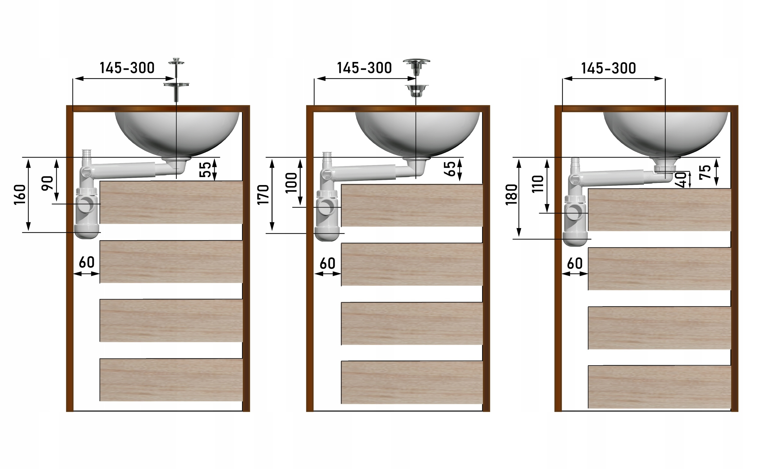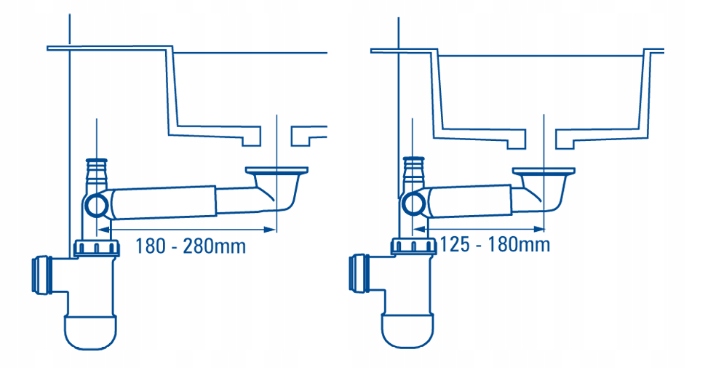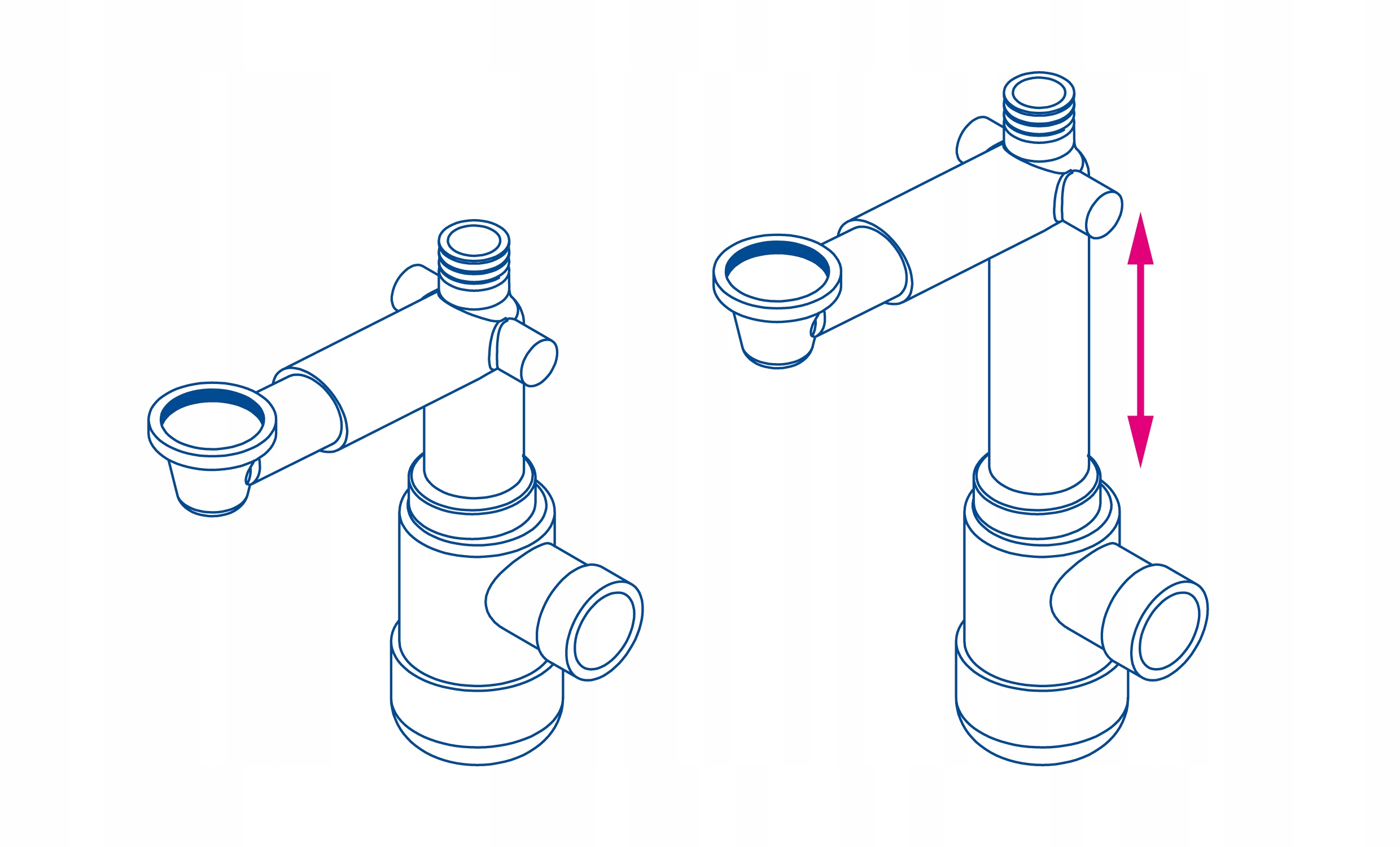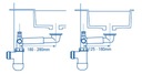 DUŻE MOŻLIWOŚCI REGULACJI - syfon można regulować zarówno w poziomie (185 - 270mm) jak i pionie (170 - 240mm)