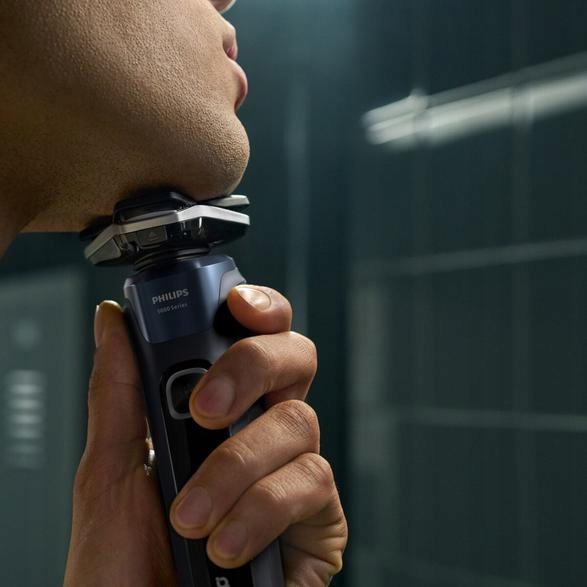 Golarka Philips Series 5000 S5885/10 Golarka Philips Series 5000 S5885/10 zapewnia szybkie, precyzyjne golenie, które dostosowuje się do kształtu twarzy, dzięki technologii Dynamic Flex. Jej elastyczne głowice obracają się w 5 kierunkach, aby maksymalnie dostosować się do konturów twarzy, zapewniając dokładne golenie nawet w trudniej dostępnych miejscach. Wyjątkowy system cięcia MultiPrecision podnosi i tnie włosy na różnych poziomach, co sprawia, że golenie jest nie tylko skuteczne, ale i komfortowe. Korzyści: - Ostrza SteelPrecision - Czujnik Power Adapt - Elastyczne głowice 360-D - Zintegrowany wysuwany trymer - Możliwość używania na mokro i na sucho - Blokada podróżna Dopasowanie do kształtu twarzy – wygoda na co dzień Golarka Philips S5885/10 wyposażona jest w technologię Flex & Pivot, która umożliwia swobodne dopasowanie głowic do konturów twarzy. Dzięki temu golenie staje się wyjątkowo komfortowe, a każda strefa twarzy jest precyzyjnie ogolona, niezależnie od kąta nachylenia. Zwiększa to wygodę codziennej pielęgnacji, szczególnie w trudno dostępnych miejscach, takich jak okolice żuchwy czy pod nosem. Precyzyjne ostrza dla wyjątkowej gładkości Golarka jest wyposażona w ostrza, które zostały zaprojektowane w celu zapewnienia idealnej precyzji. Dzięki technologii, która umożliwia golenie nawet najkrótszych włosków, urządzenie gwarantuje doskonały efekt gładkiej skóry. Cechą wyróżniającą jest możliwość wygodnego golenia na sucho i mokro, dzięki czemu można korzystać z golarki zarówno w łazience, jak i w trakcie codziennych obowiązków. Wodoodporność: Możliwość użycia zarówno na sucho, jak i na mokro. Golarka jest wodoodporna, co oznacza, że można ją używać na sucho lub pod prysznicem, a także łatwo ją wyczyścić pod bieżącą wodą. Dzięki funkcji szybkiego ładowania, pełne naładowanie urządzenia zajmuje jedynie godzinę, zapewniając do 60 minut pracy. Dodatkowo, funkcja 5-dniowego trybu precyzyjnego golenia umożliwia dostosowanie urządzenia do osobistych preferencji, zapewniając doskonałą jakość golenia każdego dnia. Długi czas pracy – golenie bez przerw Zasilanie akumulatorowe sprawia, że golarka Philips S5885/10 jest niezwykle wygodna w użytkowaniu. Czas pracy na jednym ładowaniu wynosi aż 60 minut, co wystarcza na pełną sesję golenia bez konieczności częstego ładowania. Dzięki temu urządzenie sprawdza się doskonale w podróży, czy w codziennej pielęgnacji, nie ograniczając użytkownika do strefy zasilania. Golarka Philips Series 5000 S5885/10 Innowacyjne urządzenie, które łączy precyzję, wygodę oraz trwałość, zapewniając komfort codziennego golenia. Jeśli szukasz golarki, która dopasuje się do Twoich potrzeb, nie szukaj dalej!