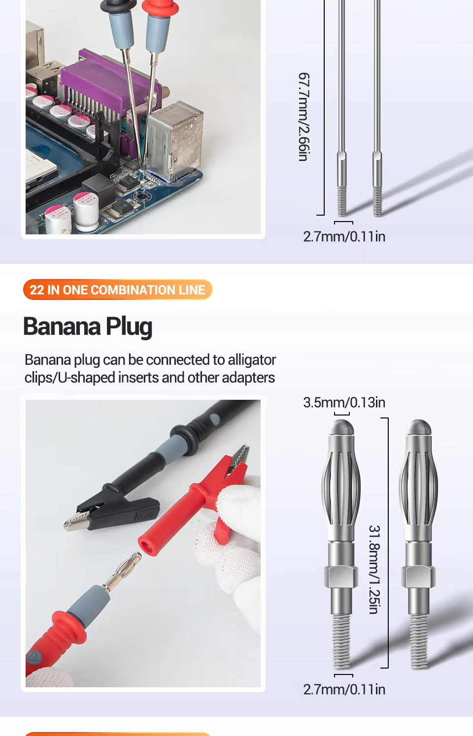 Комплект характеризуется высоким стандартом безопасности, поддерживающим напряжение до 1000В (CAT III) и максимальный ток 20а. диаметр розетки 8,2 мм позволяет легко подключить к различные измерительные приборы. Благодаря дополнительному оборудованию, такому как различные наконечники и адаптеры, PT1028 идеально подходит для широкого спектра применений, включая диагностику электрические и сервисные.