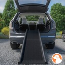 Miękka gumowa wyściółka chroni samochód. Rampa jest lekka, składana i wyposażona w uchwyty i pasek bezpieczeństwa. Zakres dostawy obejmuje składaną miskę do picia i 2 naklejki odblaskowe, które zapewniają dodatkowe bezpieczeństwo w zmierzchu i ciemności.
