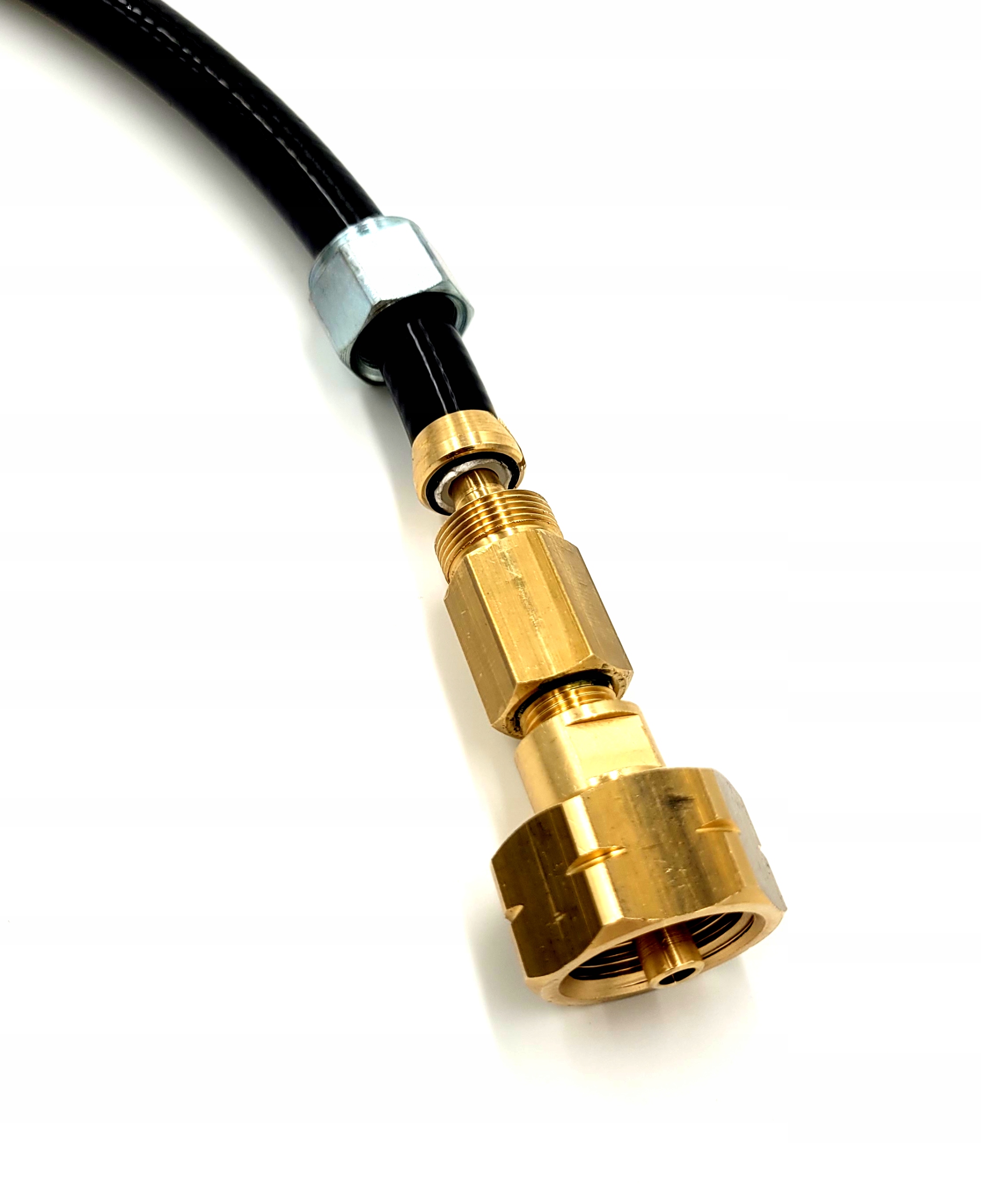 Zestaw do napełniania butli 11kg z wlewem sportowym montowanym w klapce tankowania paliwa dodatkowo z redukcją na tankowanie butli turystycznych 2kg, 3kg i 4kg. Zestaw pozawala na zatankowanie butli dzięki zastosowaniu zaworu DISH używanego przy samochodach z instalacją LPG. W skład zestawu wchodzi: