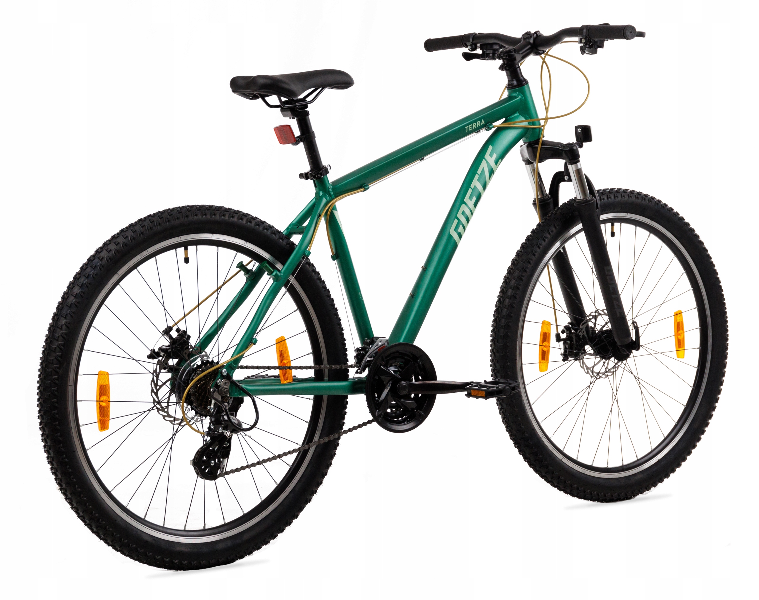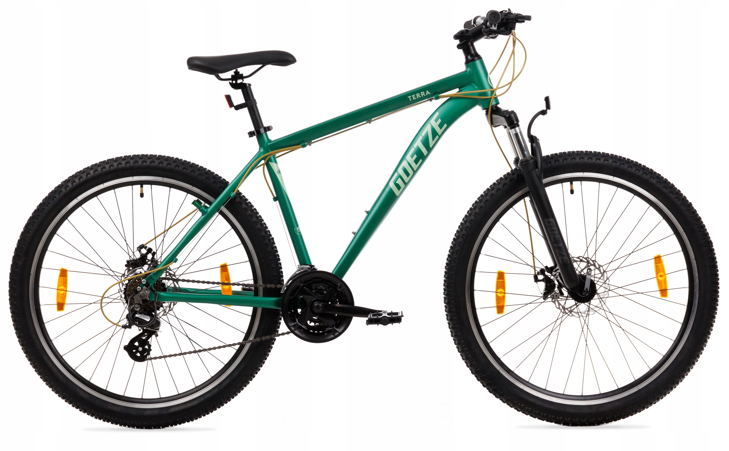 GOETZE TERRA to rower górski, który doskonale radzi sobie zarówno na piaszczystych i leśnych trasach, jak i miejskich ścieżkach rowerowych. Lekka i wytrzymała aluminiowa rama, amortyzowany widelec zapewniający komfort na bardziej wymagających trasach, przerzutka Shimano Altus i hamulce tarczowe to idealne połączenie komfortu i efektywności. Te starannie dobrane komponenty pozwalają czerpać pełnię przyjemności z jazdy, przy zachowaniu kompromisu pomiędzy dobrą jakością a ceną. Goetze Terra to uniwersalny sprzęt o zacięciu sportowym, który świetnie poradzi sobie na wybranej przez ciebie trasie.