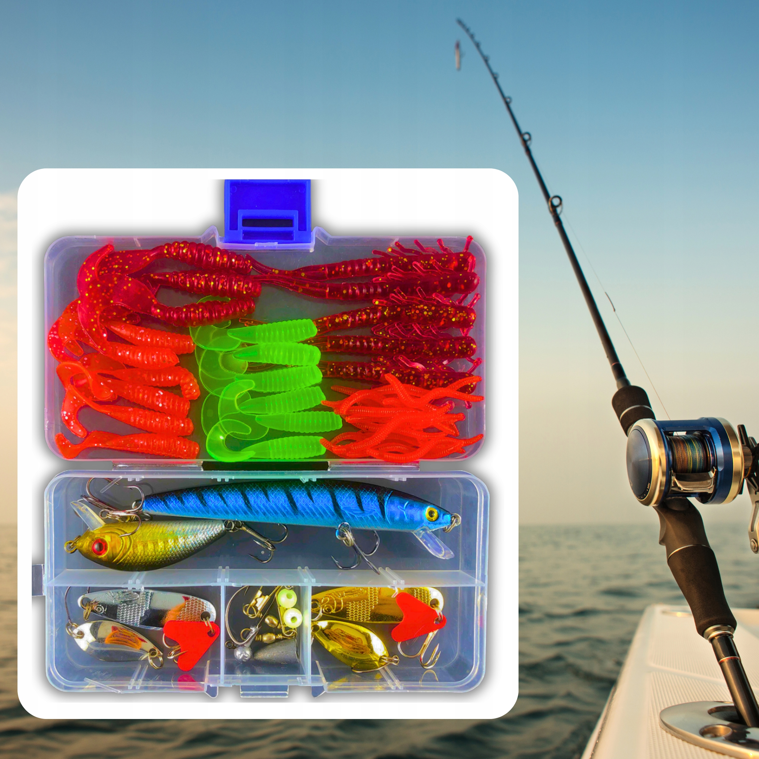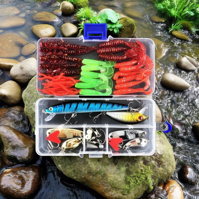 Идеально подходит для всех-от новичков до опытных рыболовов, которые ищут практичную, готовую пакет для работы над водой. Внутри вы найдете целых 54 элемента-приманки, воблеры, аксессуары и прочная коробка с отделениями.