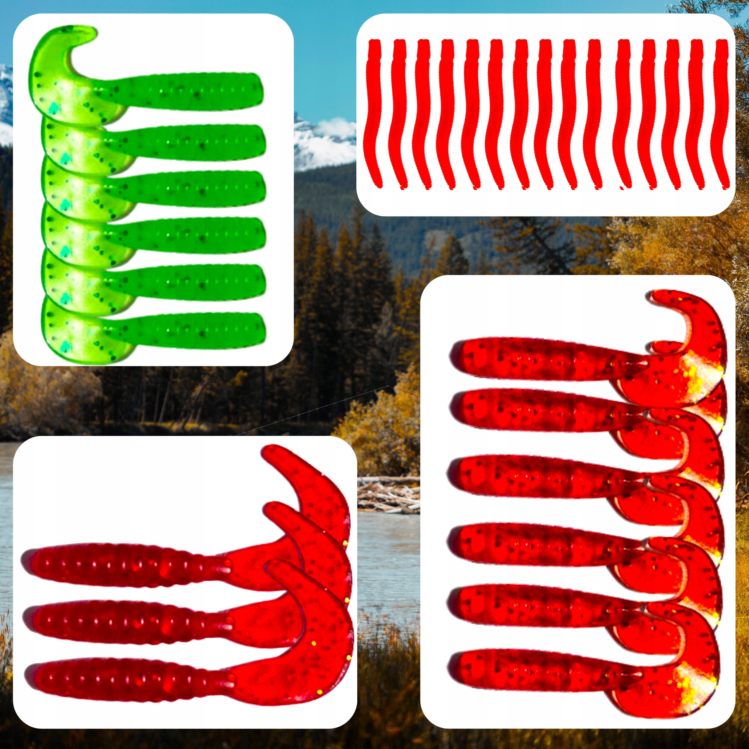 Wszystkie przynęty gumowe posiadają dodatek brokatu, który zwiększa ich widoczność w wodzie: