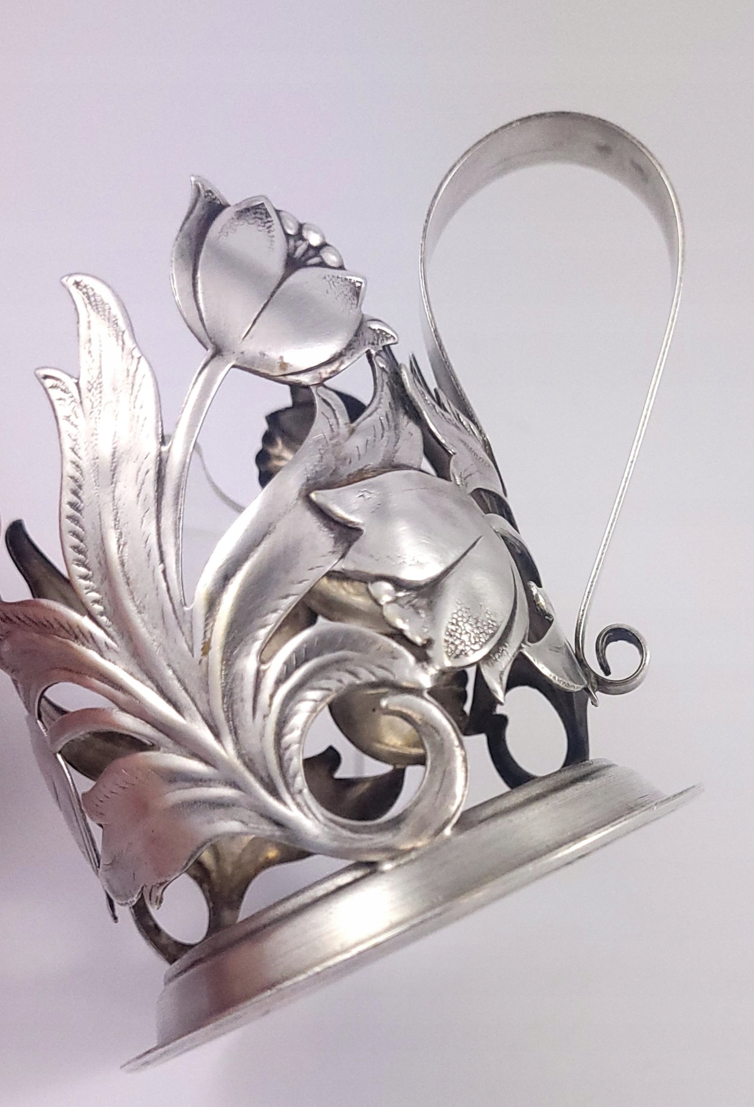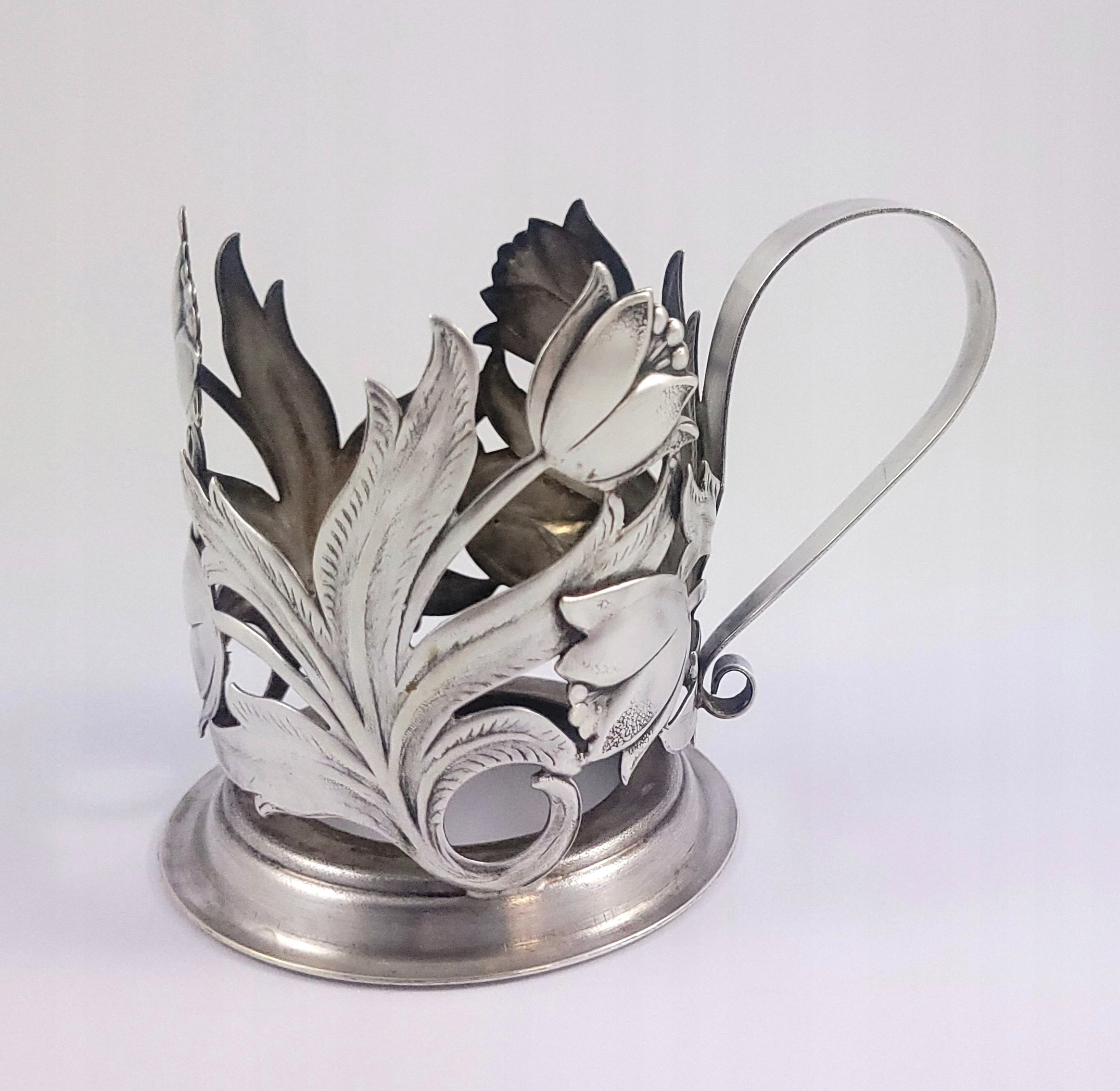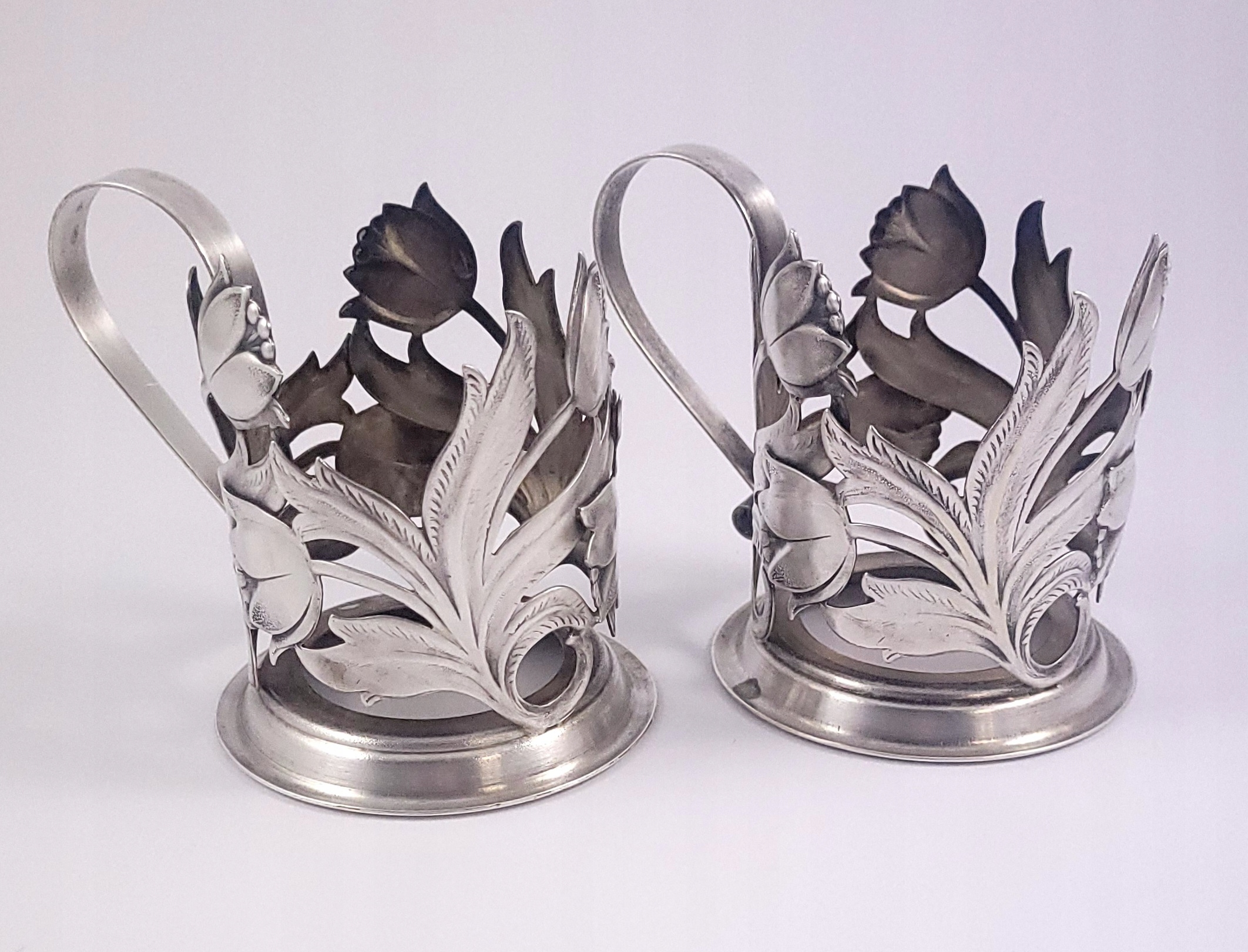 Komplet sześciu platerowanych uchwytów do szklanek - tzw podstakanników.