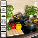 Этот универсальный набор кастрюль подойдет для любой кухни – подходит для индукции, газа, плиты керамической и электрической. Изготовлен из прочного материала с мраморным покрытием, набор посуды Zilner он устойчив к царапинам и повреждениям, гарантируя надежность в течение многих лет. Стеклянные крышки они позволяют удобно контролировать приготовление пищи без подъема, что экономит энергию и время.