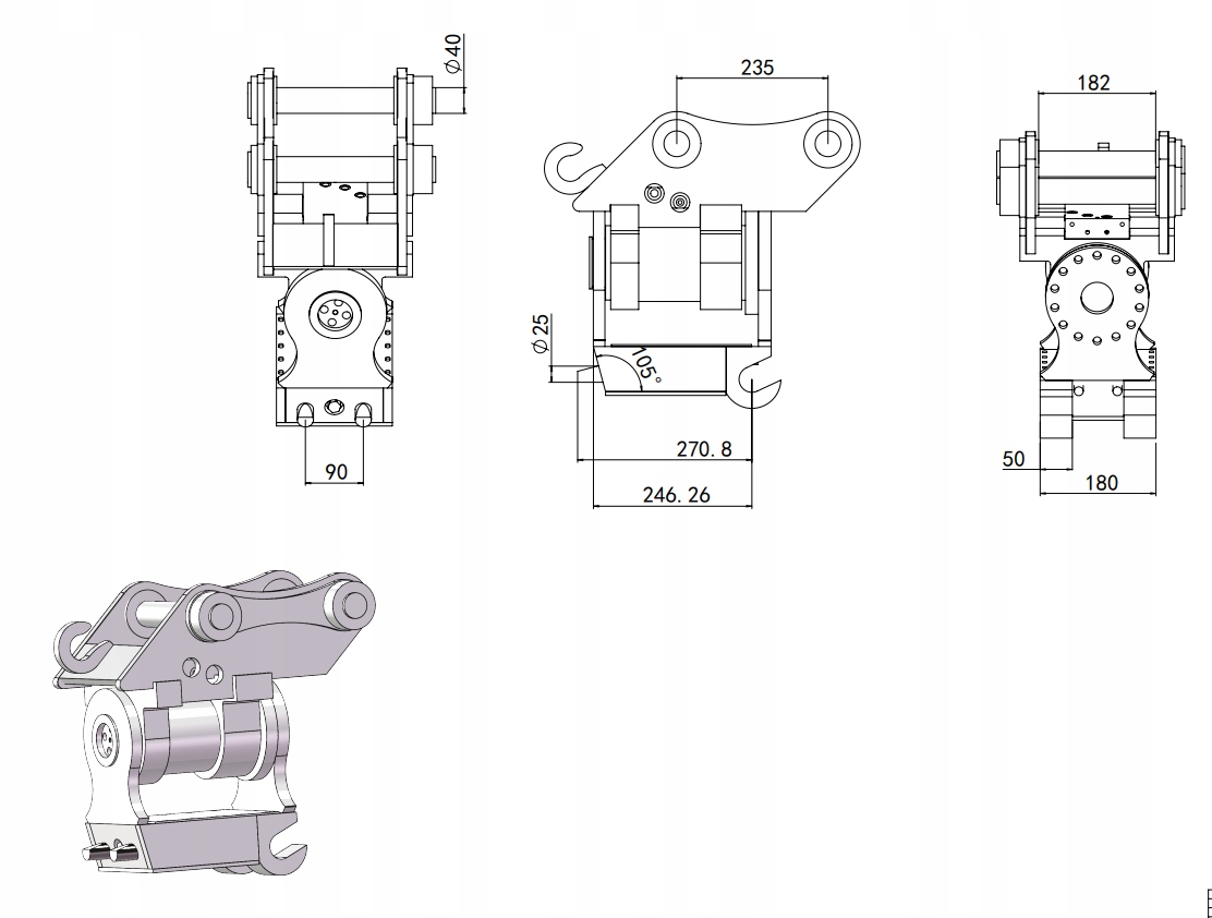 Поворотное соединение ковша экскаватора совместимо с машинами всех производителей między innymi Sunward, Sany JCB, CAT, Manitou, Case, Volvo, Komatsu, Atlas, Terx New Holland, Bobcat, Fermec, Gehl, Hitachi, Kubota, Neuson, Yanmar , Takeuchi,