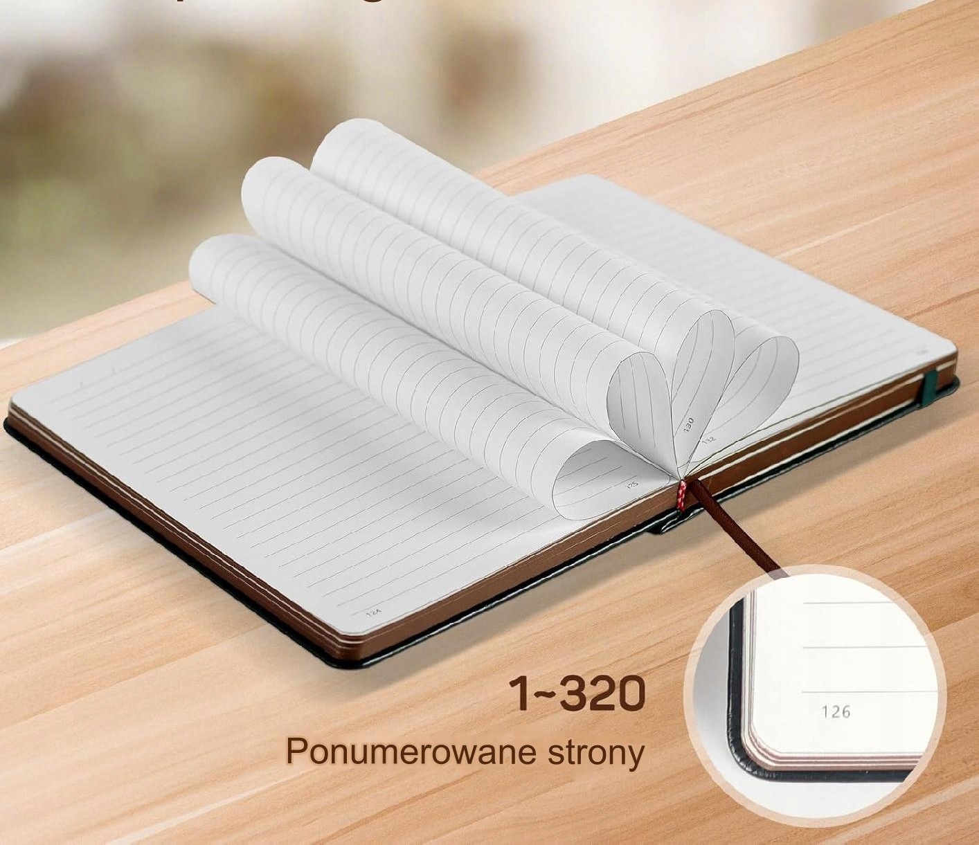 ✔️ Gruby papier premium – 320 stron o gramaturze 100 g/m², nie przebija tuszu.