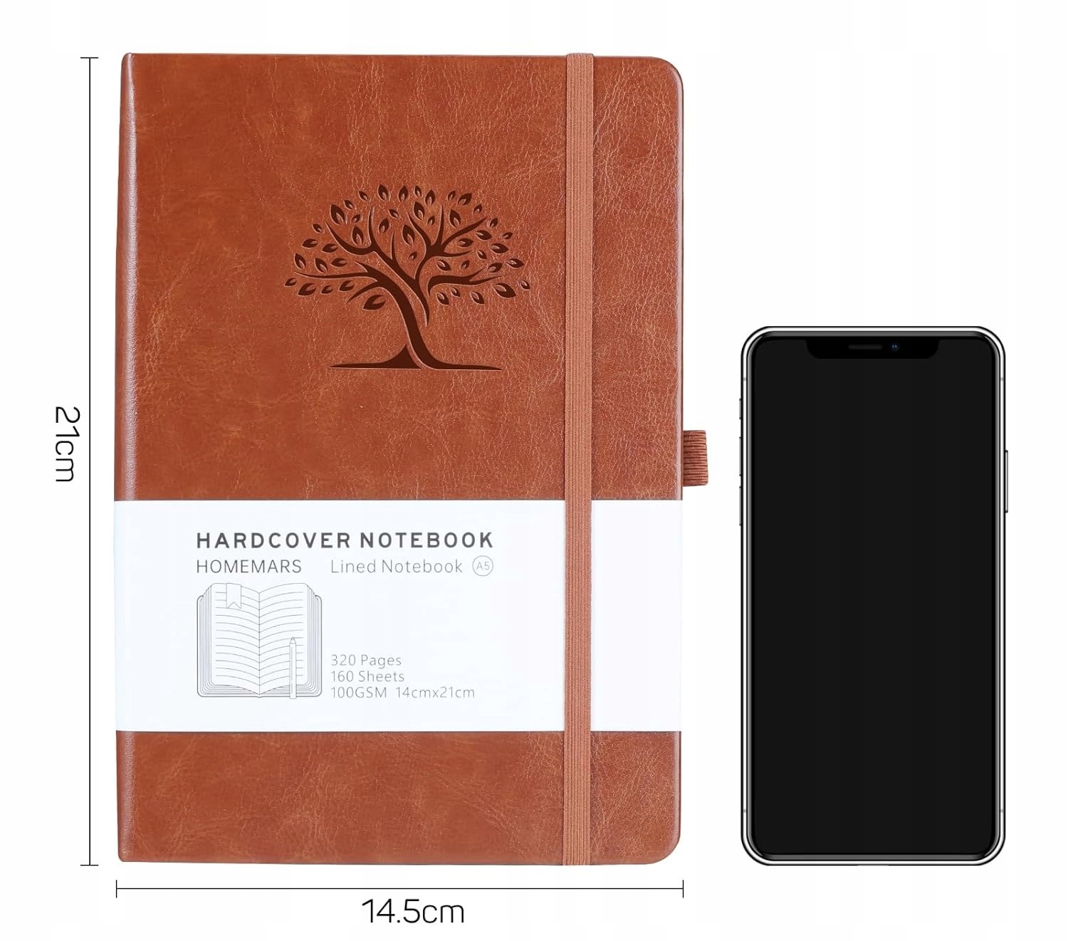 Elegancki skórzany notatnik w stylu vintage to idealny towarzysz codziennych zapisów, planów i refleksji. Wykonany z ekoskóry z wytłoczonym wzorem drzewa, łączy klasyczny design z nowoczesną funkcjonalnością. Dzięki formatowi A5 oraz grubym, 320-stronicowym kartkom z wysokiej jakości papieru, doskonale nadaje się do każdego typu notatek.