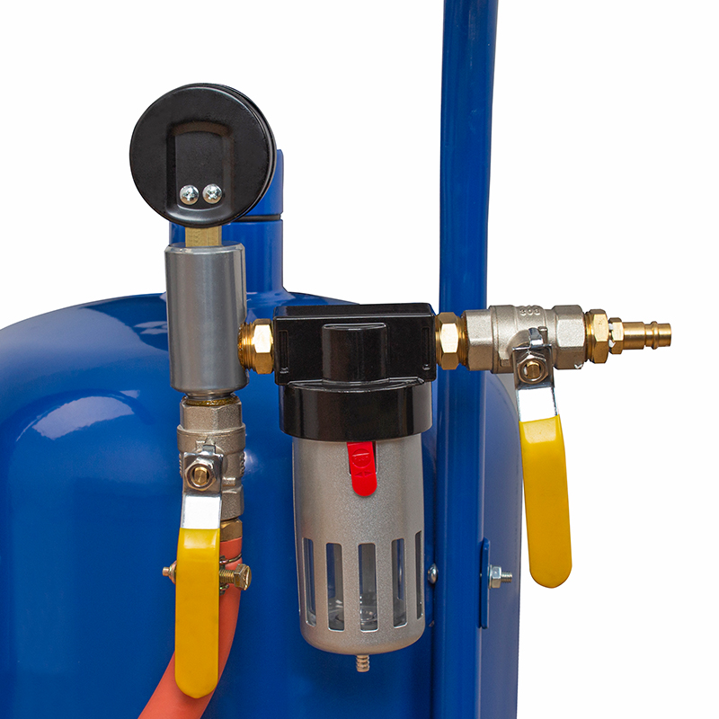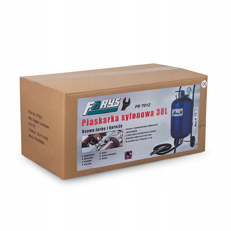 Wąż zakończony pistoletem do piaskowania, który spełnia wymogi CE