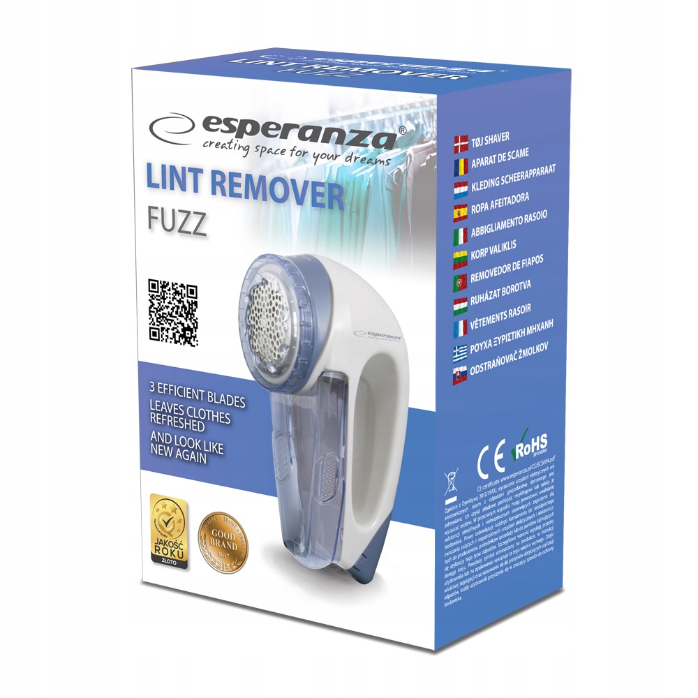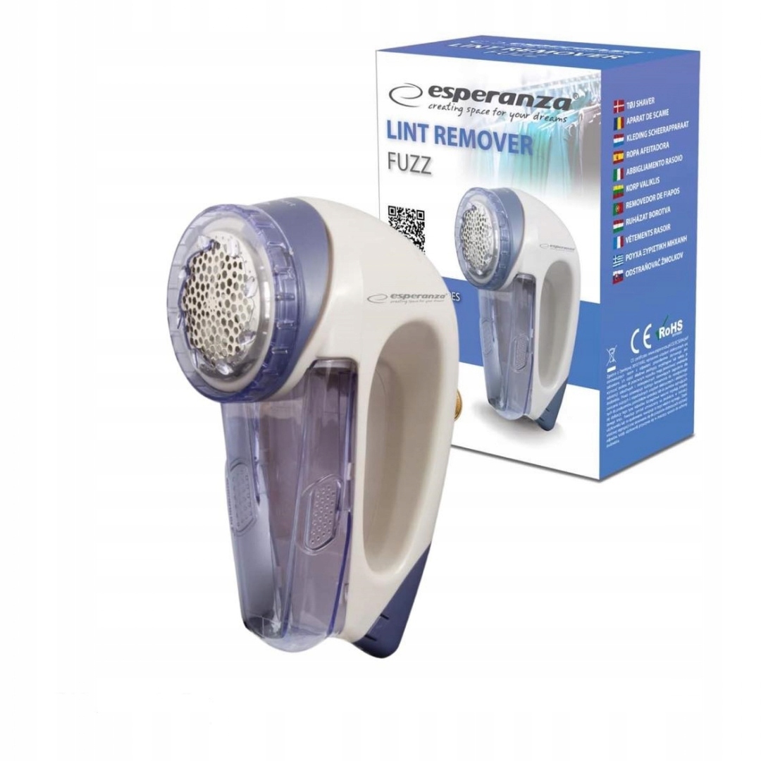 Golarka do ubrań ESPERANZA FUZZ to praktyczne urządzenie do usuwania zmechaceń z ubrań, tapicerki, koców i innych tekstyliów, dzięki któremu dłużej będą wyglądały jak nowe. Ergonomiczny kształt idealnie dopasowuje się do dłoni. Przeźroczysty pojemnik na odpady pokazuje kiedy go opróżnić. Golarka usuwa zmechacenia szybko i skutecznie.