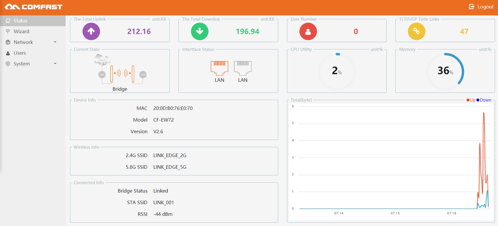 Wykończenie matowe korpusu, oraz kontrastujące LEDy przyciągają uwagę swoją elegancją i upewniają o najwyższej jakości komponentów elektronicznych. Zminiaturyzowana do granic obudowa a w niej potężny procesor MediaTek MT7621DAT+ MT7613BEN+ MT7603E taktowany 650MHz z RAM 128MB DDR - polecany użytkownikom ceniącym niespotykany, markowy projekt, stabilność, jak i możliwości rozbudowy systemu.