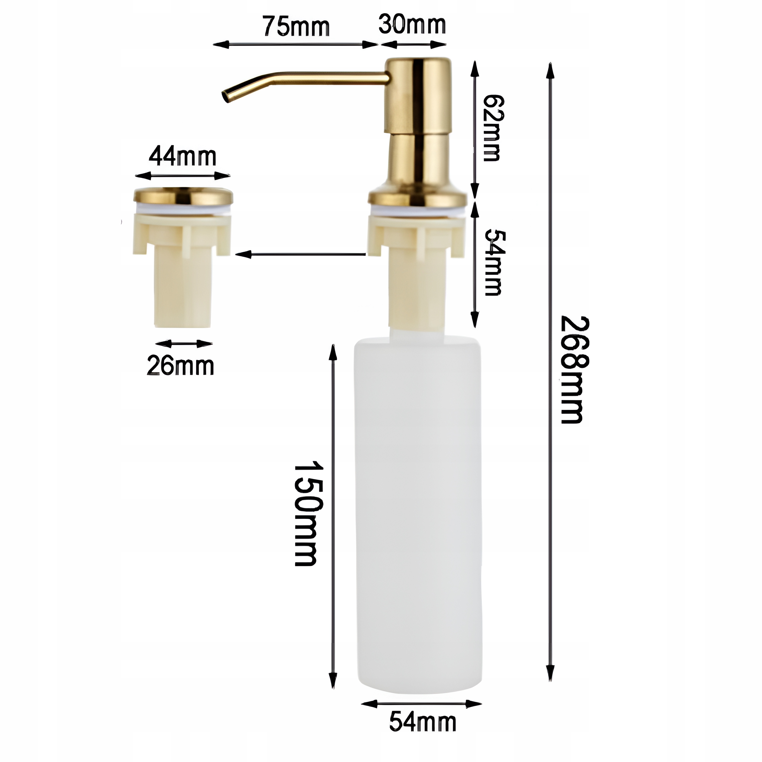 Elegancki i funkcjonalny dozownik do płynu to praktyczne rozwiązanie do kuchni. Stylowe złote wykończenie nadaje mu nowoczesny wygląd, a przezroczysty pojemnik na płyn ułatwia kontrolowanie ilości detergentu. Precyzyjna pompka zapewnia wygodne dozowanie płynu, co czyni go idealnym do codziennego użytku podczas zmywania naczyń. Dozownik do płynu do naczyń jest łatwy w montażu i czyszczeniu, co zwiększa jego funkcjonalność. Dzięki uniwersalnemu designowi doskonale wpasuje się w każdą aranżację kuchenną, łącząc estetykę z praktycznością.