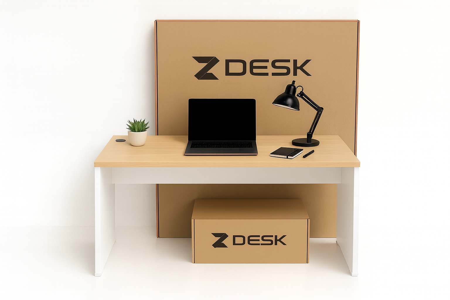 ✅ Każde biurko pakujemy w specjalny karton produkowany na nasze zamówienie – idealnie dopasowany do wymiarów mebla, zapewnia stabilność i bezpieczeństwo podczas transportu.
