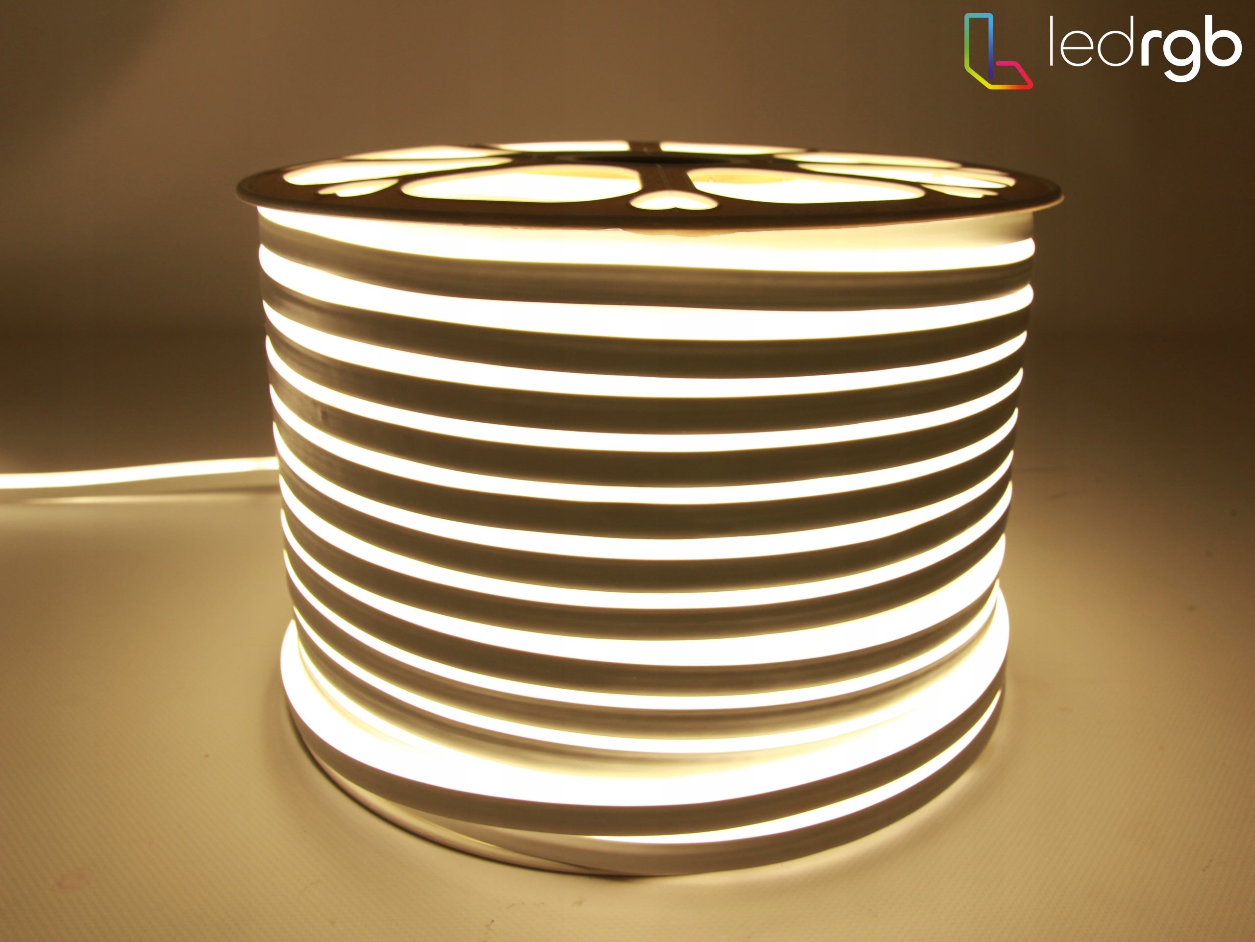 To, co wyróżnia naszą taśmę LED NEON 220V 4000K na tle innych, to możliwość zamówienia aż do 100 metrów taśmy na jednym odcinku! Większość taśm LED dostępnych na rynku ma ograniczenia co do długości, ale my oferujemy maksymalną swobodę instalacji. Koniec z łączeniem krótszych fragmentów – teraz możesz podłączyć nawet 100 metrów ciągłej taśmy LED, co daje ogromne możliwości aranżacyjne zarówno w domu, jak i w przestrzeniach komercyjnych.