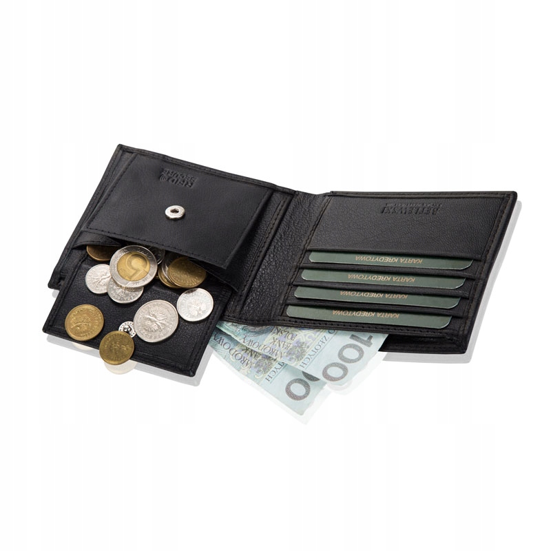 ✔️ Przemyślane wnętrze – miejsce na karty, dokumenty, banknoty i bilon