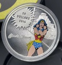 Projekt monety naśladuje stronę tytułową komiksu z wygrawerowanym wizerunkiem WONDER WOMAN. WONDER WOMAN jest filarem siły, gdy stoi ze skrzyżowanymi bransoletami, gotowa odeprzeć wszystko, co może stanąć na jej drodze. Zastosowanie niebieskiego, czerwonego i żółtego koloru na szczegółowym grawerunku odtwarza jej kultowy kostium i symbol, szczególnie żółty kolor jej tiary i Lasso Prawdy noszone na biodrze. Za nią znajduje się wygrawerowany widok jej wyspiarskiego domu Themyscira, znanego również jako Paradise Island, podczas gdy klasyczne logo WONDER WOMAN jest wygrawerowane po jej lewej stronie. Wzór półtonowy laserowy dodaje nowoczesny element graficzny, który wypełnia tło, jednocześnie nasycając cały projekt klasycznym komiksowym klimatem.