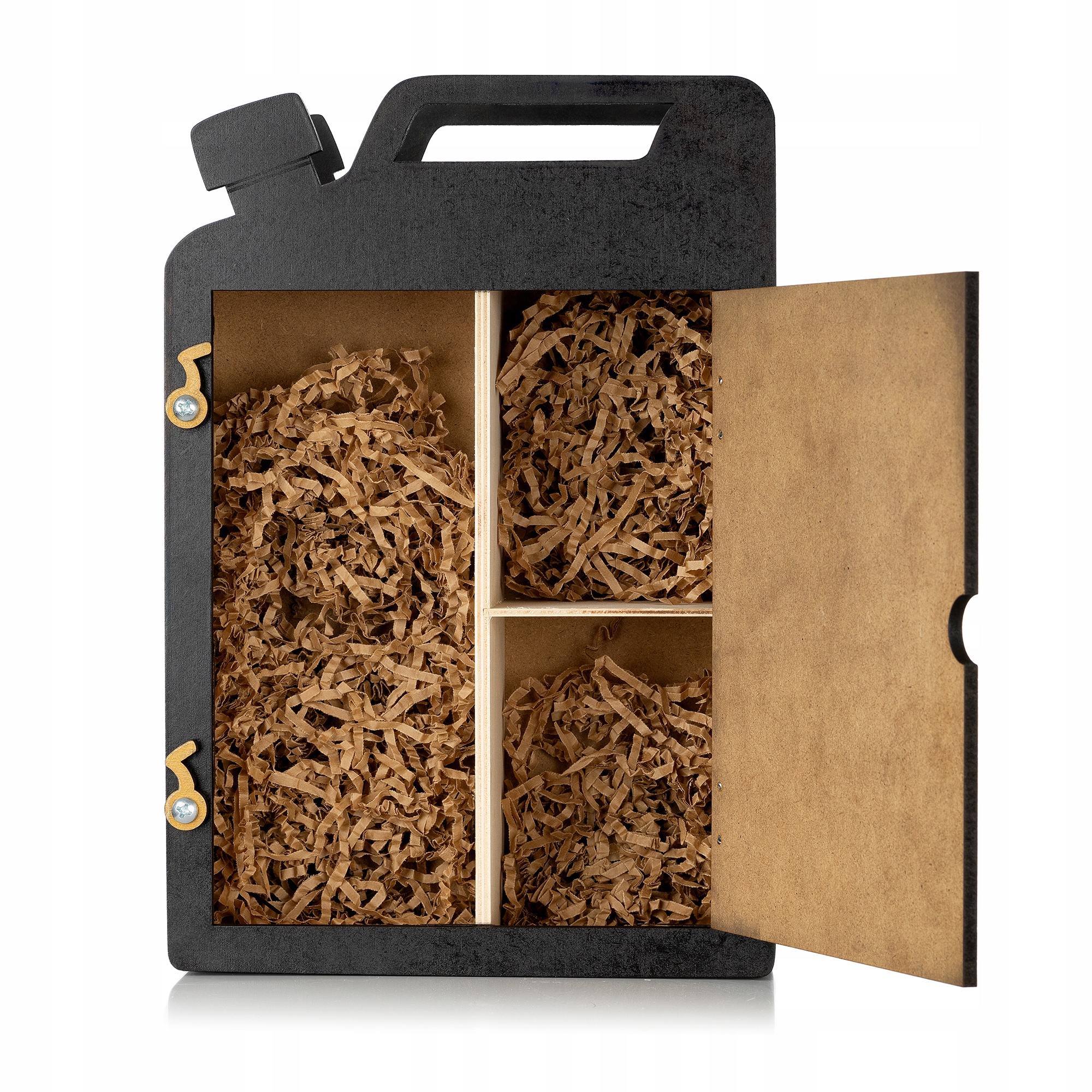 ⚜️ Kanister zawiera wiórki papierowe, które nie tylko chronią butelkę, ale także dodają uroku całości. Taki detal podkreśla dbałość o estetykę i sprawia, że prezent wygląda kompletnie i luksusowo.