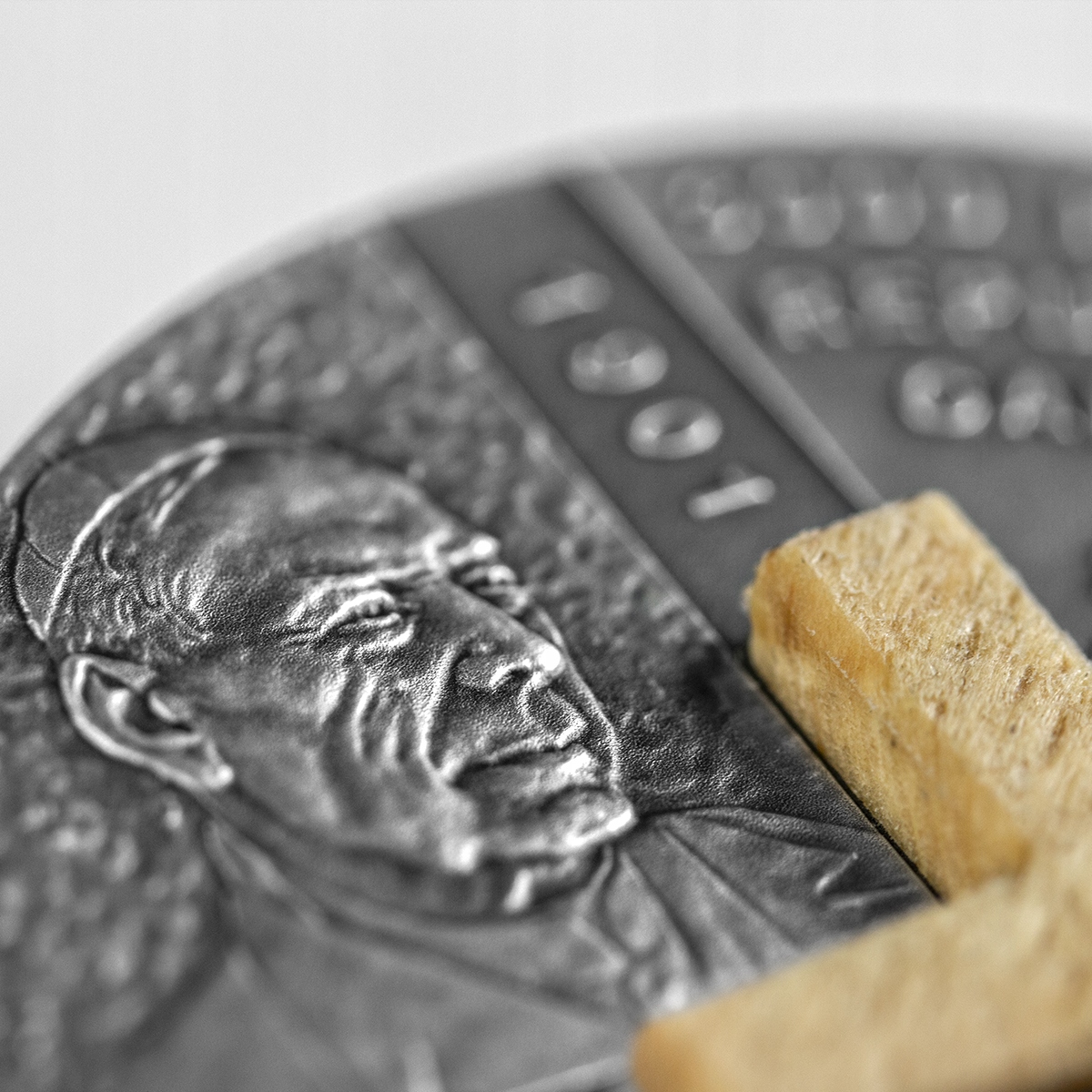 Jej awers zdobi drewniany krzyż, a wykończenie w technologii antique finish podkreśla jej ponadczasowy charakter.