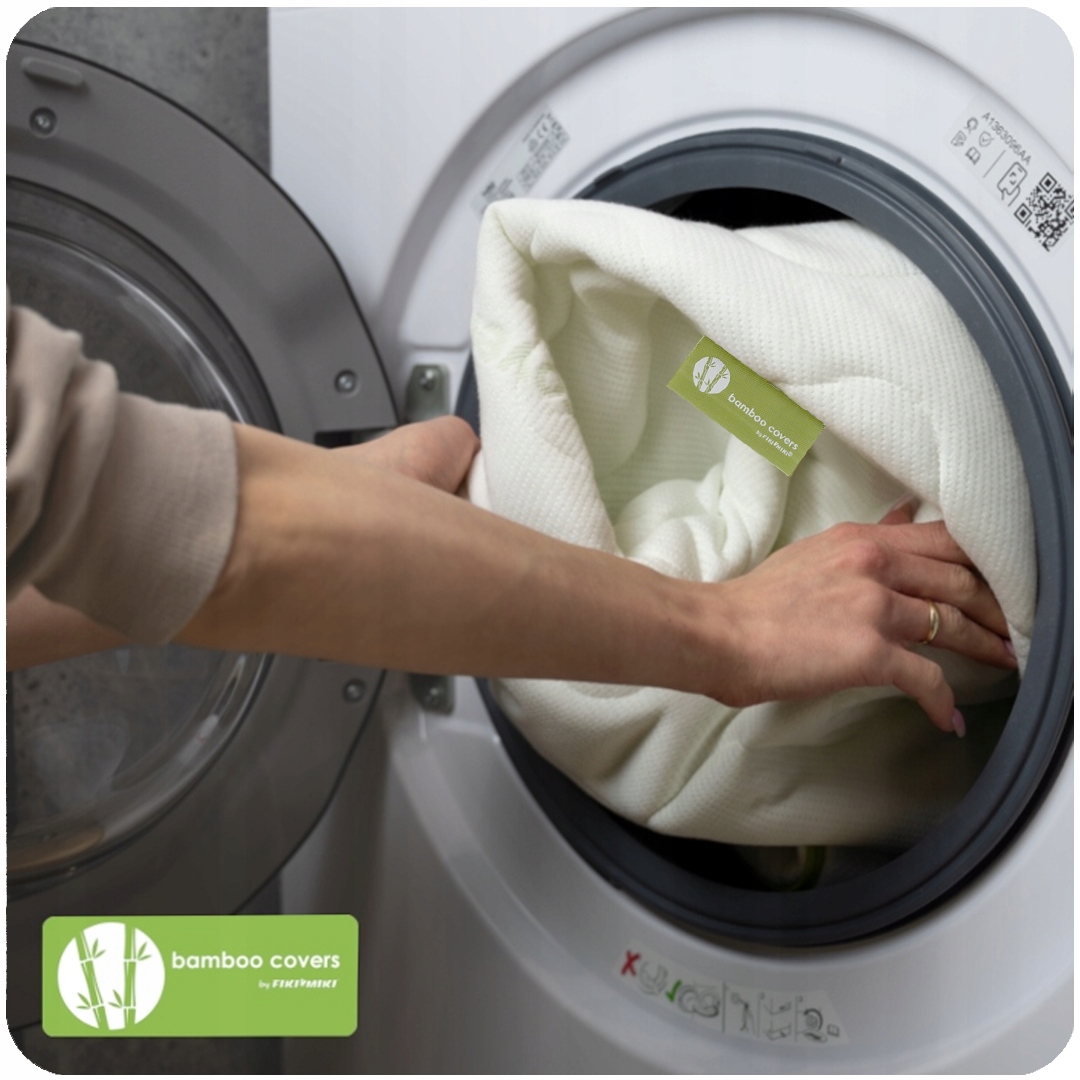 ✔️ Pokrowiec przystosowany jest do wielokrotnego prania w pralce w temperaturze 40°C, oraz wirowania do max. 1000obr./min. Można go w łatwy sposób zdjąć i założyć ponownie po praniu.