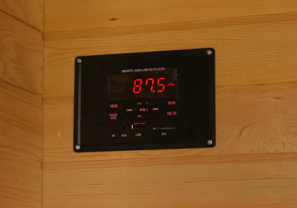 Sauna jest wykonana z drzewa jodłowca kanadyjskiego, znanego również jako cykuta. To sprawia, że drzewo nie wydala żadnego zapachu, nie zawiera żywicy, której zapach mógłby się uwolnić po jego ogrzaniu.