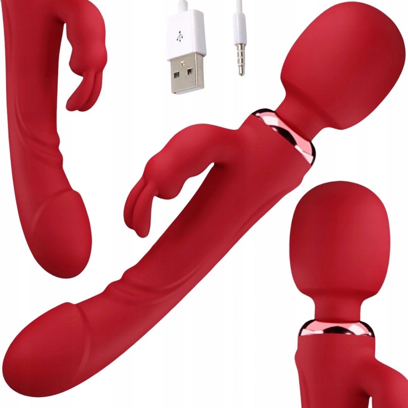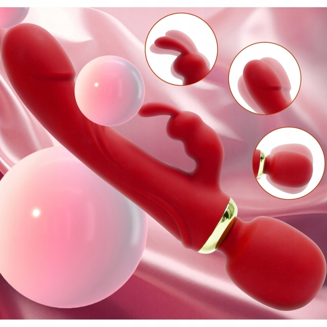 Z jednej strony posiadamy dildo z króliczkiem, a z drugiej strony głowice do masażu.