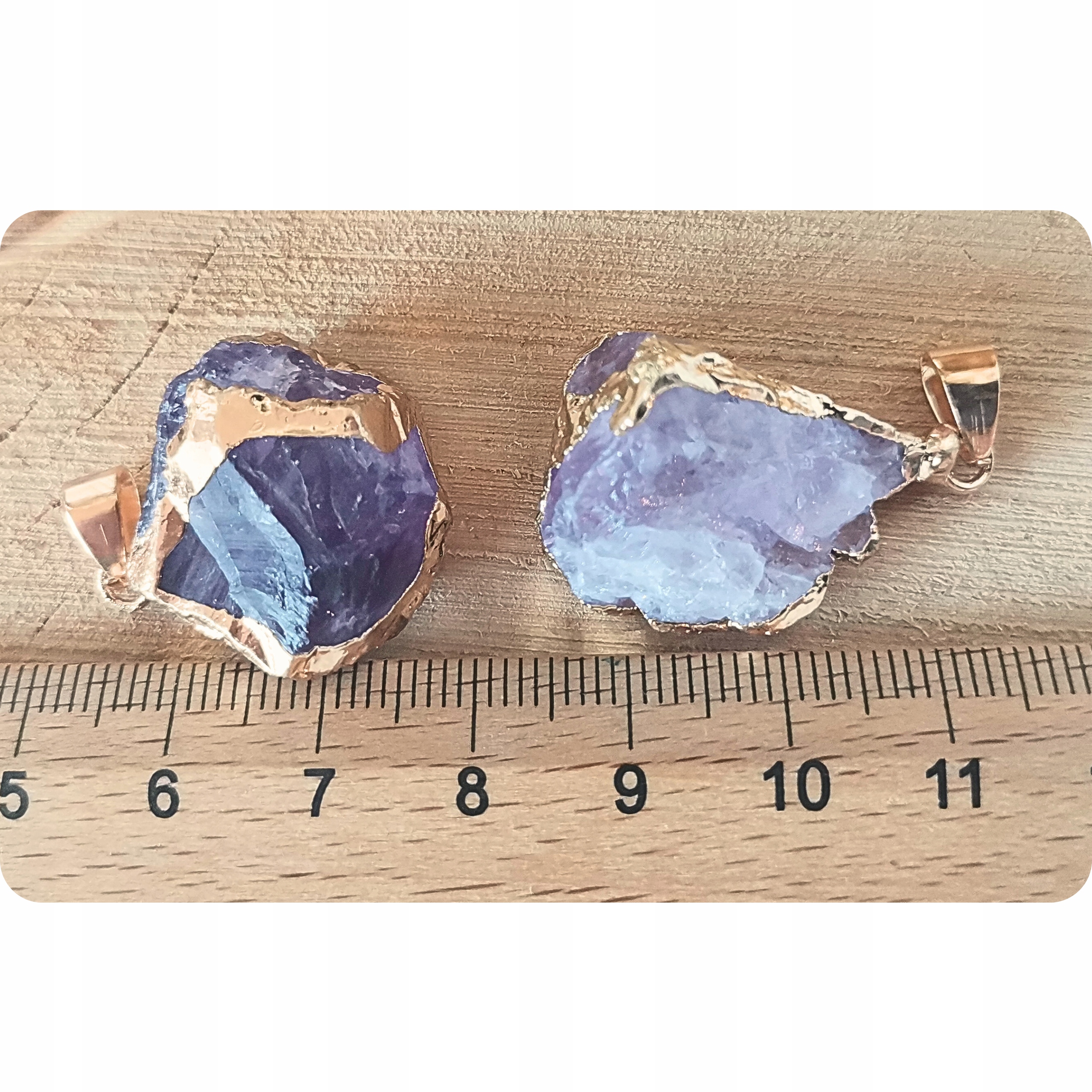 Rozmiar zawieszki: 1,9 - 2,6 cm - ze względu na różnice w pojedynczych kawałkach ametystu wymiary mogą się delikatnie różnić od siebie