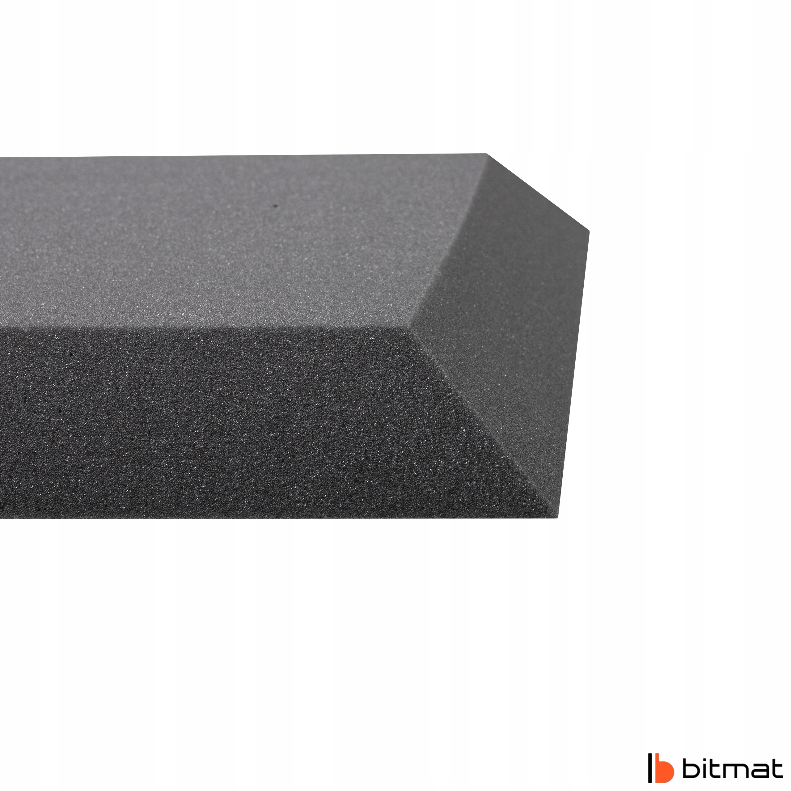 Panel akustyczny w kształcie trapezu 50 cm x 50 cm marki Bitmat to skuteczne rozwiązanie do wygłuszania wnętrz mieszkalnych, biurowych, sal prób i studiów nagraniowych. Dzięki otwartokomórkowej strukturze pianka pochłania i rozprasza fale dźwiękowe, eliminując echo oraz redukując czas pogłosu. Dodatkowo nowoczesny design paneli sprawia, że stanowią one estetyczny element aranżacji wnętrza.