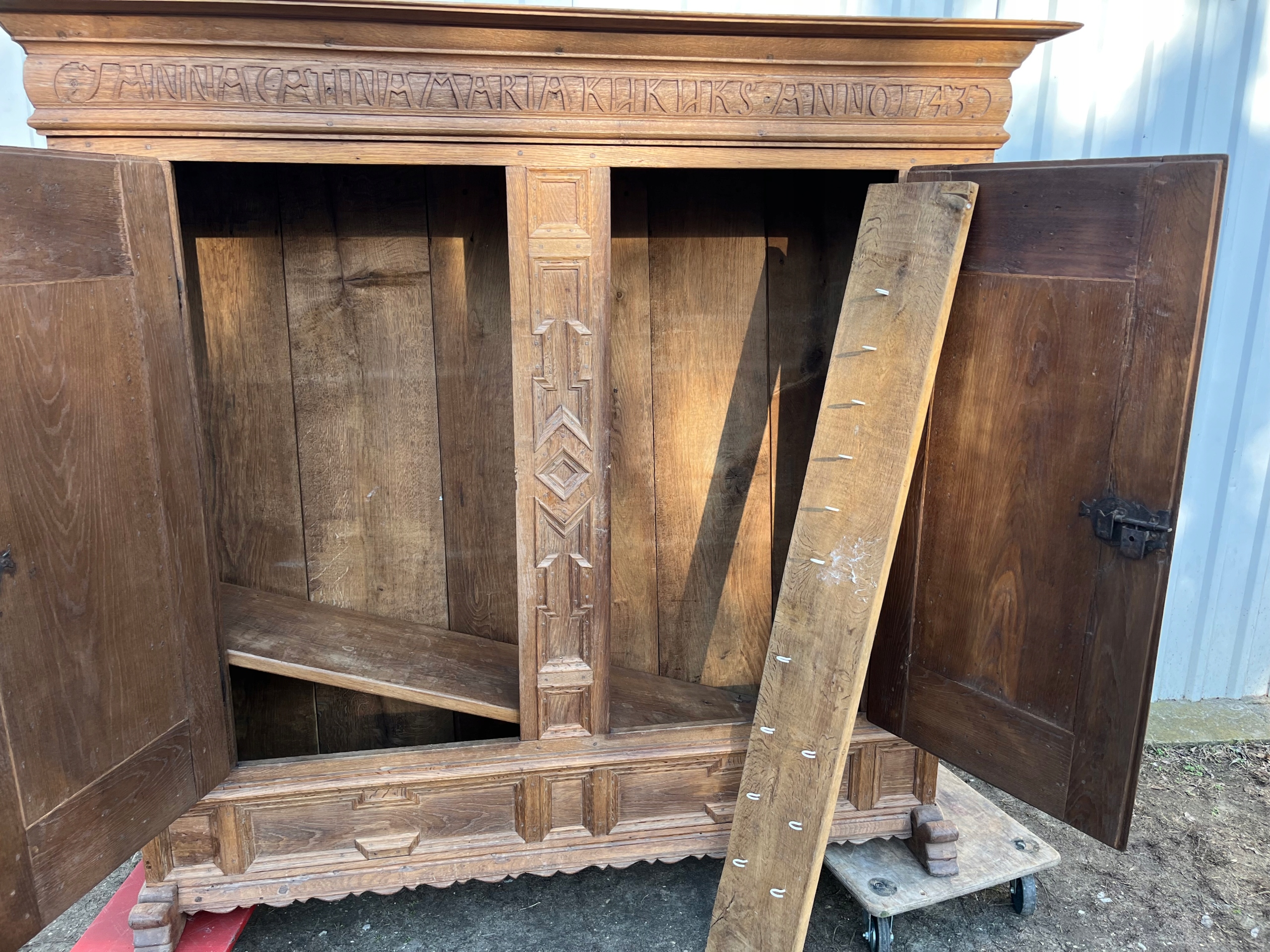 bardzo stara dębowa z litego drewna komoda pochodząca z Niemiec, z przodu wygrawerowana data , wszystkie rzeźby i zdobienia wykonana ręcznie ,wszystkie zamki i uchwyty oryginalne . Mebel bardzo stary zbijany na drewniane gwoździe ,w stanie dobrym bez korników , wymiary blatu 182 x 52 cm , wys 168 cm . Posiadam kilka podobnych mebli .