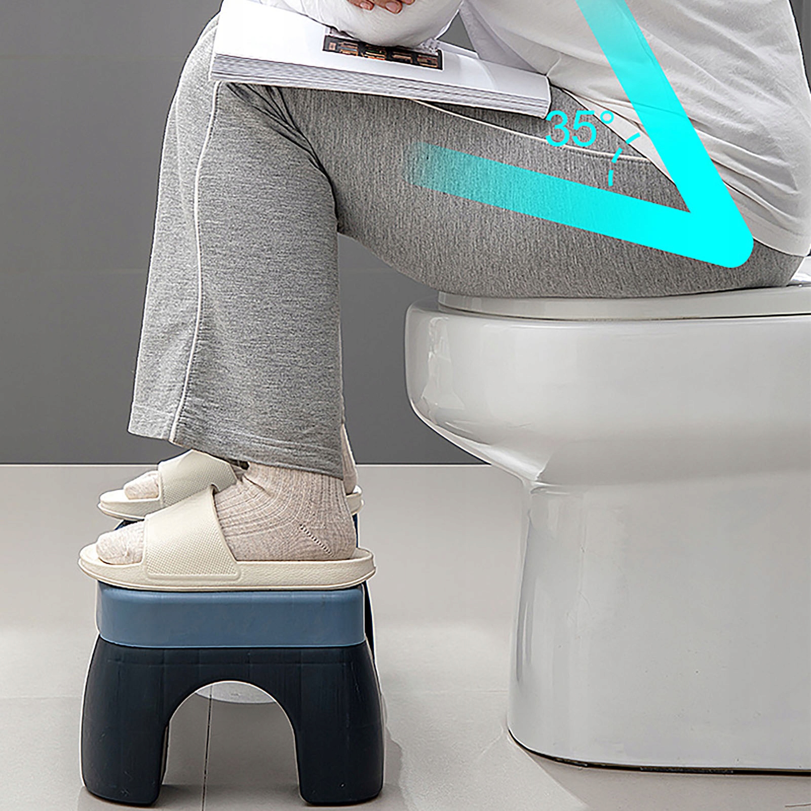 2. Zapobiegaj poślizgowi: kucki podnóżek do toalety ze stabilnym dnem i podkładką antypoślizgową, która zapewnia bezpieczeństwo i stabilność podczas użytkowania.