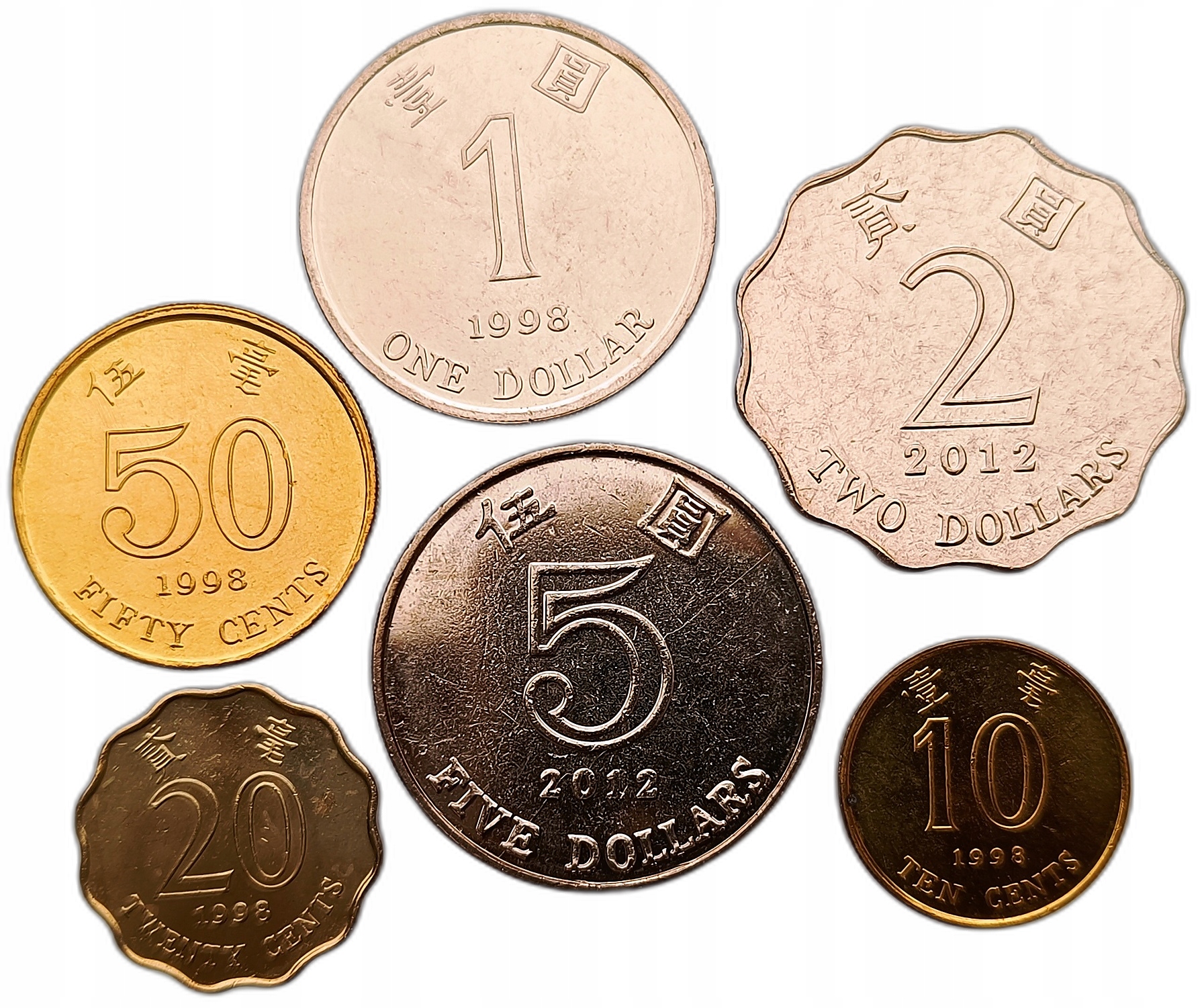 Zestaw sześciu monet obiegowych z Hongkongu w stanie menniczym (UNC), obejmujący nominały od 10 centów do 5 dolarów. Monety przedstawiają charakterystyczne motywy florystyczne, w tym kwiat Bauhinia blakeana – symbol Hongkongu. Zestaw ten jest doskonałym przykładem numizmatyki regionu i świetnym dodatkiem do kolekcji.
