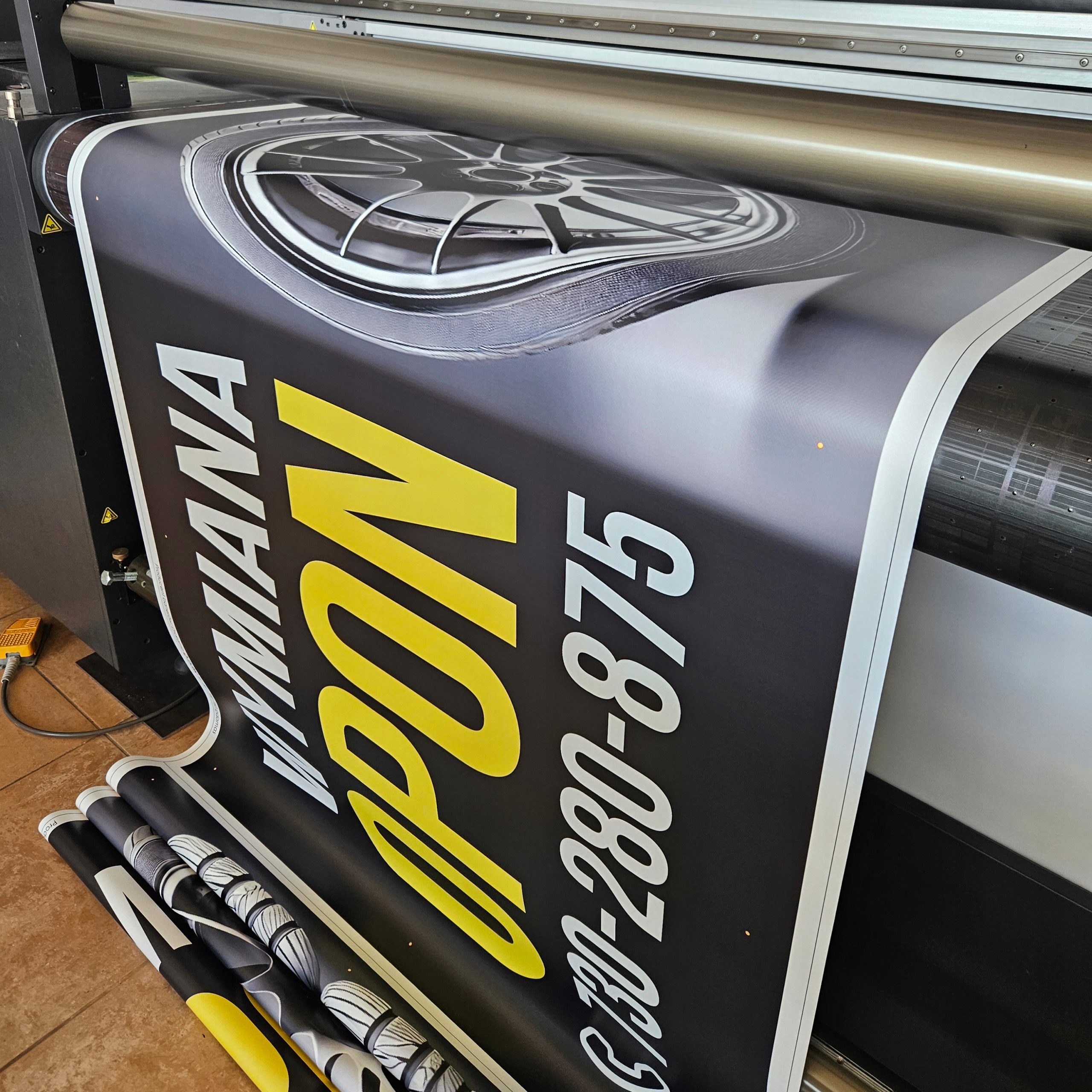 Przyciągnij uwagę klientów do nowych produktów lub promocji, umieszczając baner w widocznym miejscu, np. na ogrodzeniu lub na fasadzie warsztatu.
