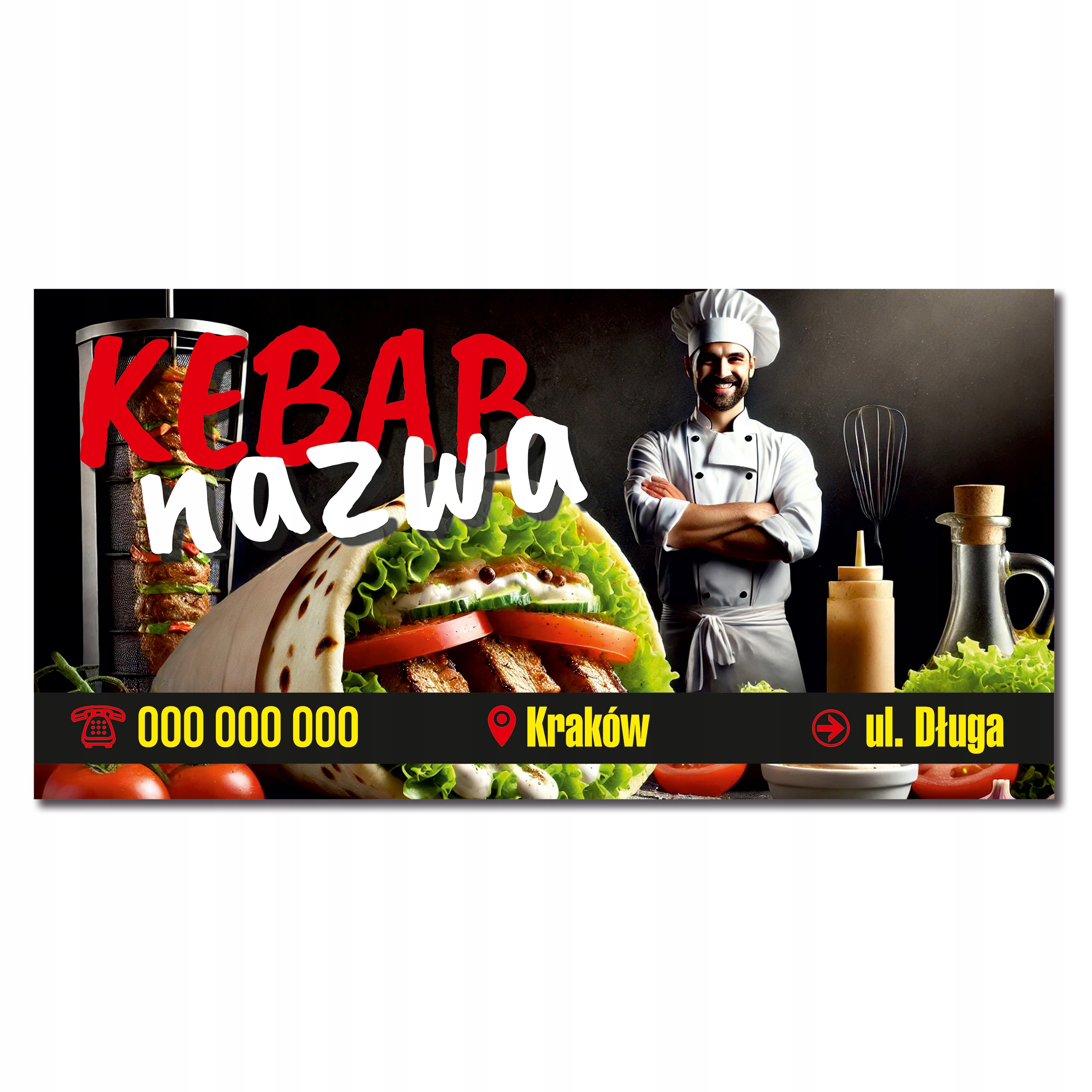 Zwiększ sprzedaż w swojej restauracji dzięki naszemu banerowi! Ten duży, kolorowy baner (2x1m) z napisem "Kebab" to doskonały sposób na przyciągnięcie uwagi klientów i wyróżnienie swojej działalności gastronomicznej.